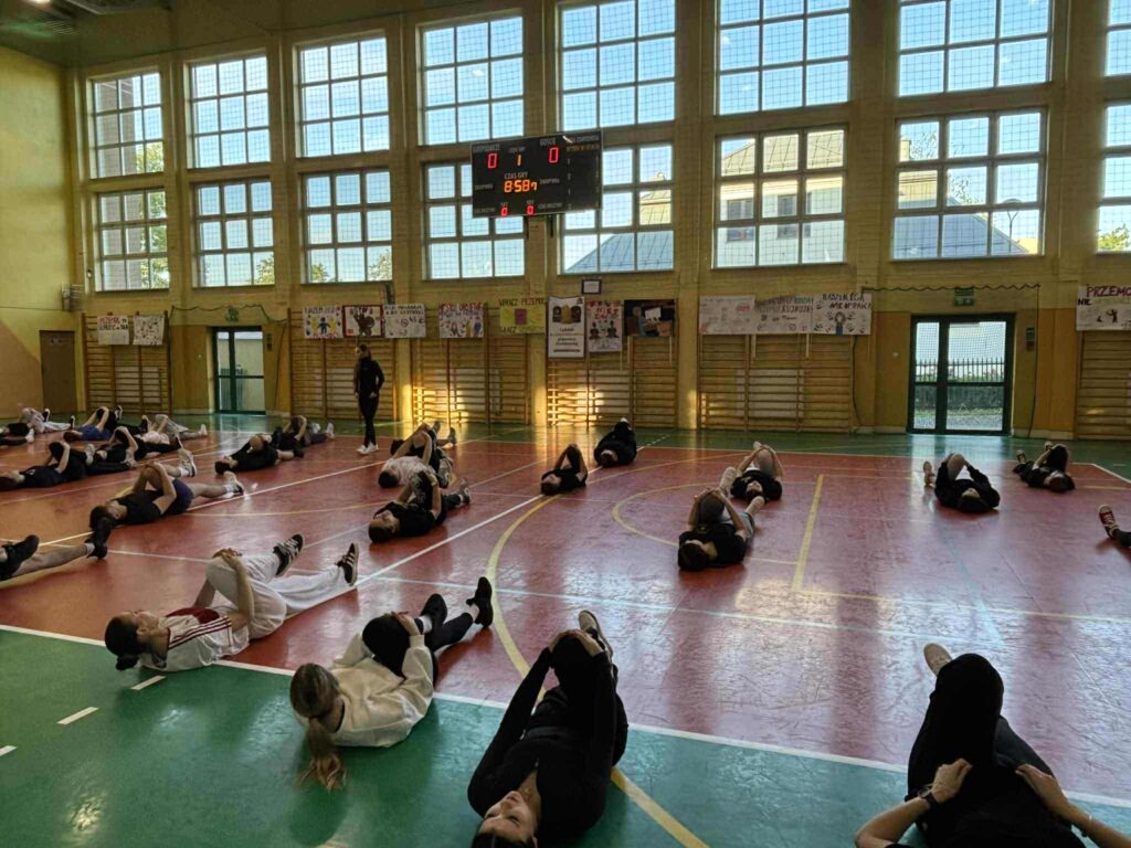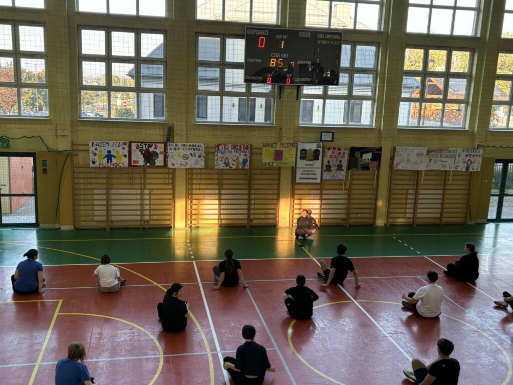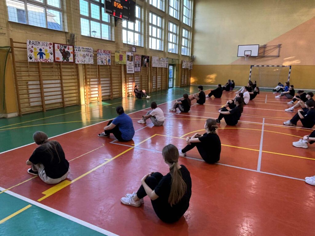 Nie zabrakło również praktycznych elementów – w ramach zajęć wychowania fizycznego nauczyciele WF codziennie prowadzili ćwiczenia oparte na świadomym oddechu, które okazały się pomocne w radzeniu sobie ze stresem i konstruktywnym reagowaniu na trudne emocje, takie jak złość. Wprowadzili technikę TIP – szybkiego obniżania intensywnych emocji.