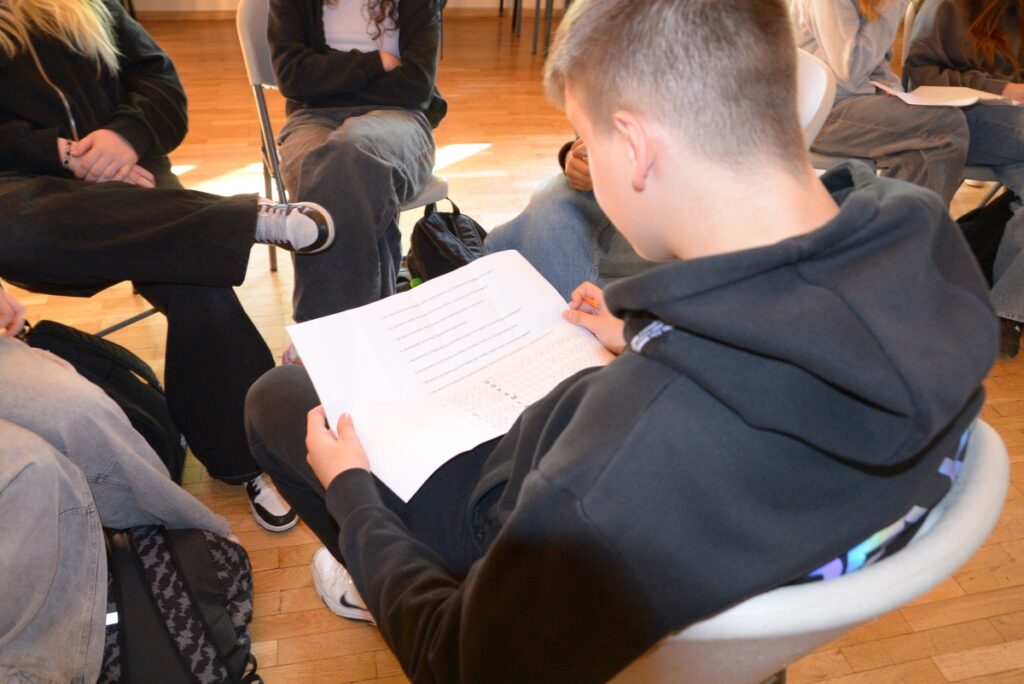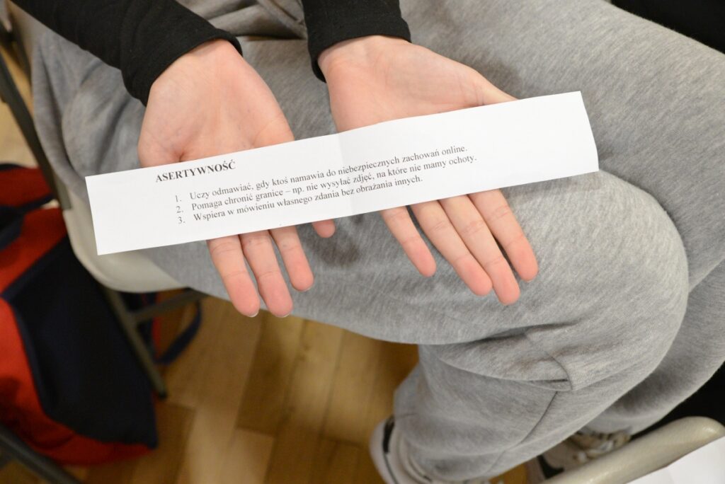 Podczas zajęć młodzież dzieliła się własnymi doświadczeniami i refleksjami, co pozwoliło na odkrywanie mocnych stron uczestników oraz budowanie indywidualnych i grupowych zasobów przydatnych w codziennym życiu. Wspólnie podkreślono, jak ważne są takie wartości jak wrażliwość na drugiego człowieka, autentyczność, intencjonalne działanie czy odwaga, które stają się czynnikami chroniącymi w odpowiedzialnym korzystaniu z mediów społecznościowych.