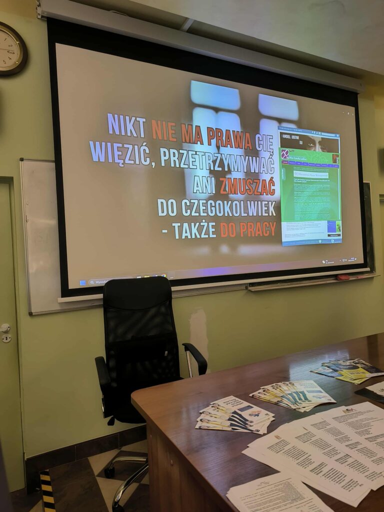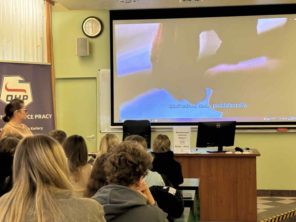 8 października 2025 r. w Zespole Szkół Ponadpodstawowych im. Mikołaja Kopernika w Busku-Zdroju odbyło się spotkanie profilaktyczno-edukacyjne poświęcone tematyce handlu ludźmi oraz zasad bezpiecznego podejmowania pracy za granicą.