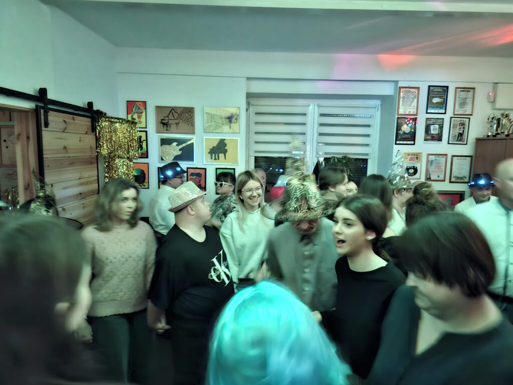 Wspólne tańce i ulubiona muzyka stworzyły wyjątkową, pełną serdeczności atmosferę. Na twarzach uczestników nie znikały uśmiechy, a chwile spędzone razem były dla młodzieży źródłem wielu pozytywnych emocji.