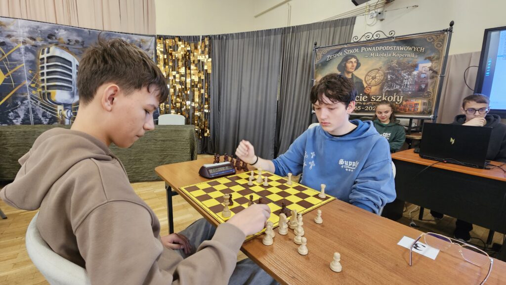 W dniu 16 kwietnia 2026 roku w Zespole Szkół Ponadpodstawowych odbył się wyjątkowy turniej szachowy pod inspirującą nazwą „Bitwa Umysłów”. Wydarzenie zgromadziło aż 25 uczestników – uczniów naszej szkoły oraz pasjonatów królewskiej gry, którzy z zaangażowaniem stanęli do intelektualnej rywalizacji.
