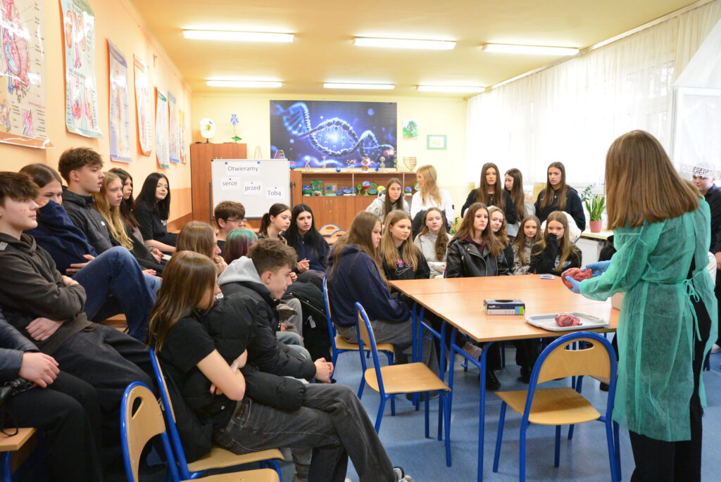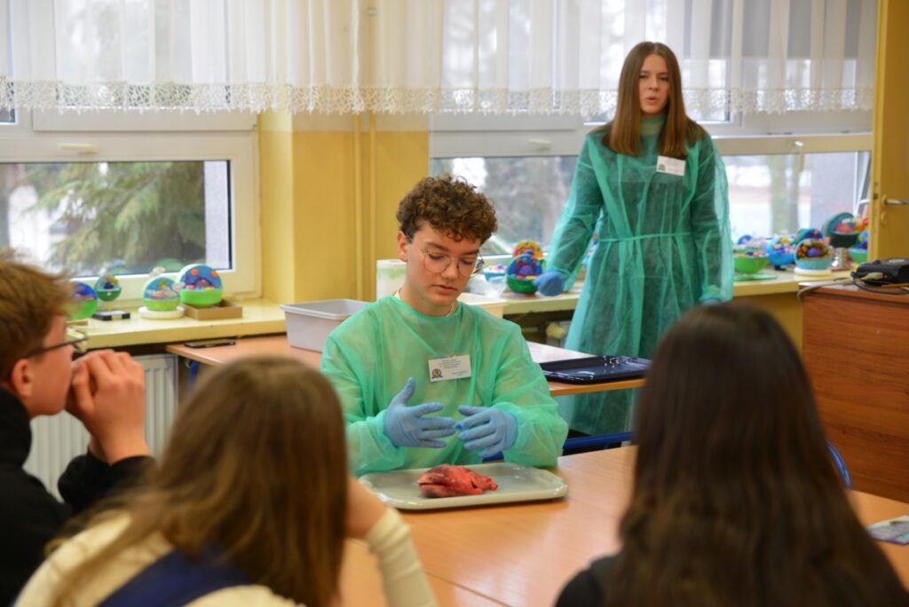Dużym zainteresowaniem cieszyły się również warsztaty biologiczne, podczas których zaprezentowano m.in. pracę „żywego serca”, co wzbudziło ciekawość i zaangażowanie uczestników.