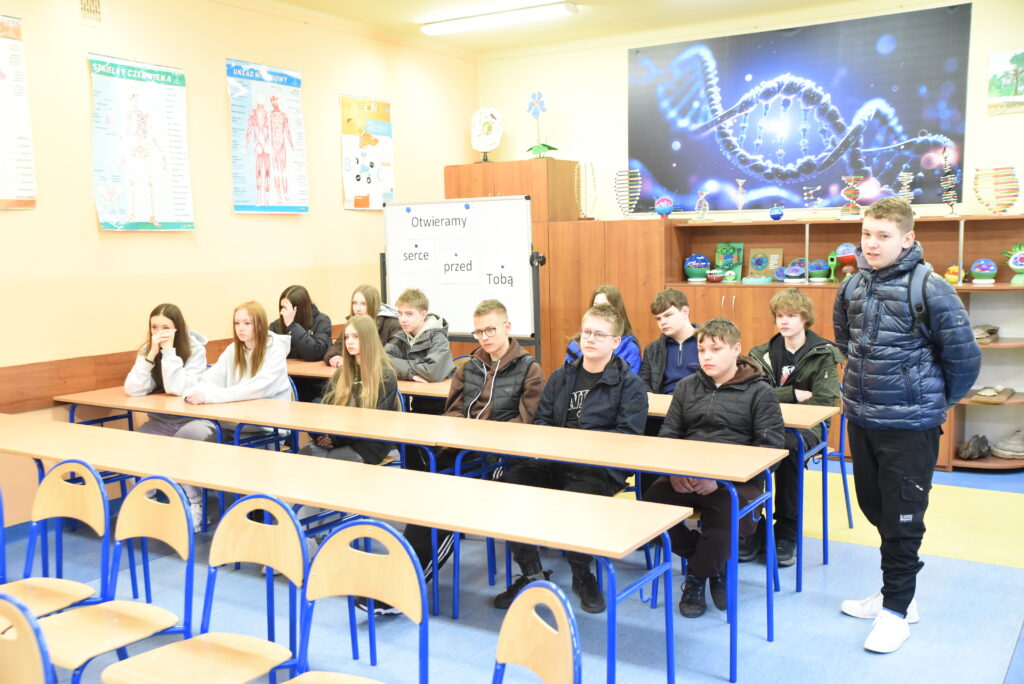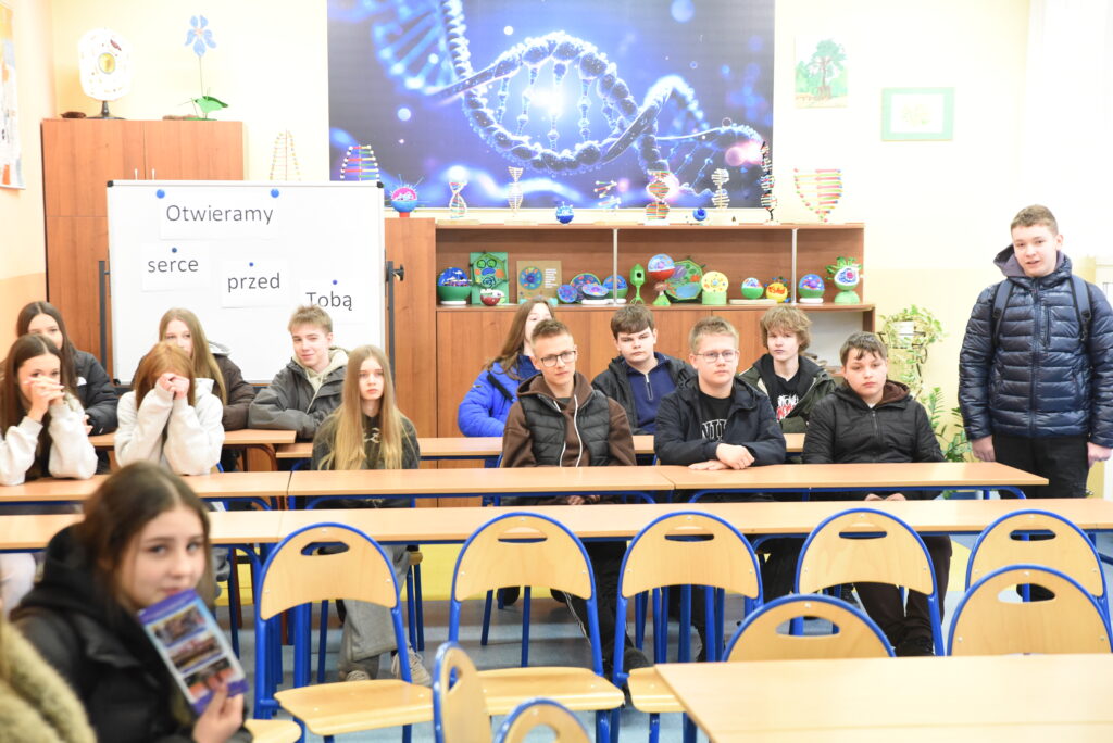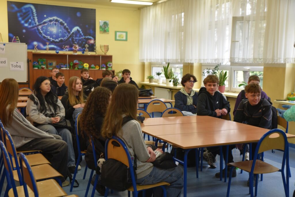 Warsztaty prowadzone były przez Kacpra Kornasia oraz Magdalenę Szydłowską z kl. IV B, którzy w przystępny sposób przybliżyli zagadnienia biologiczne.