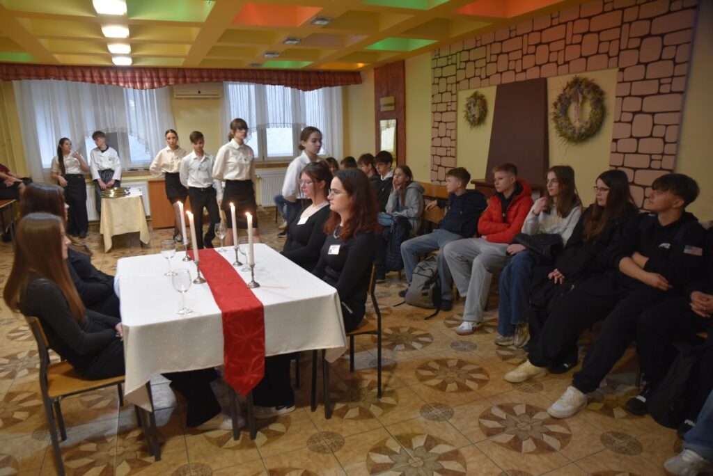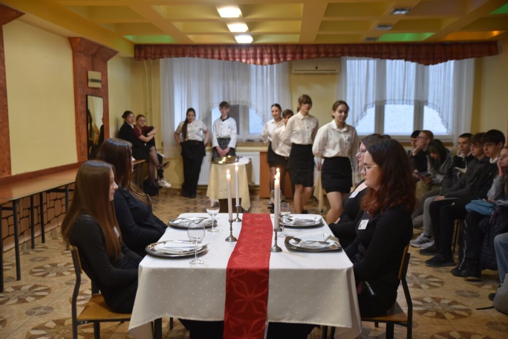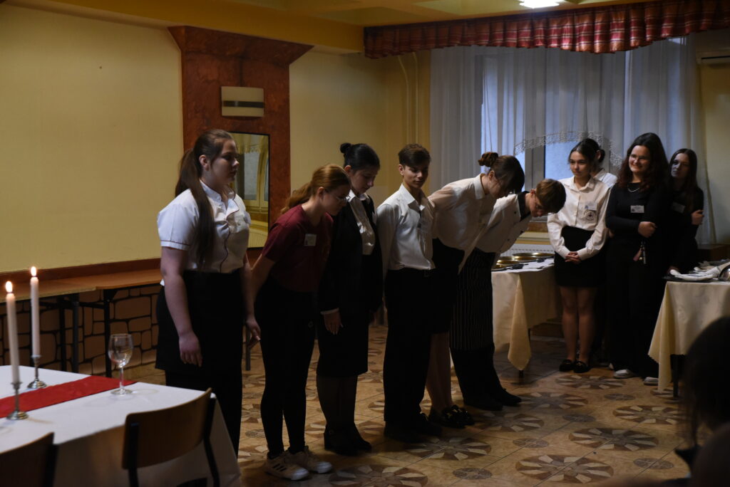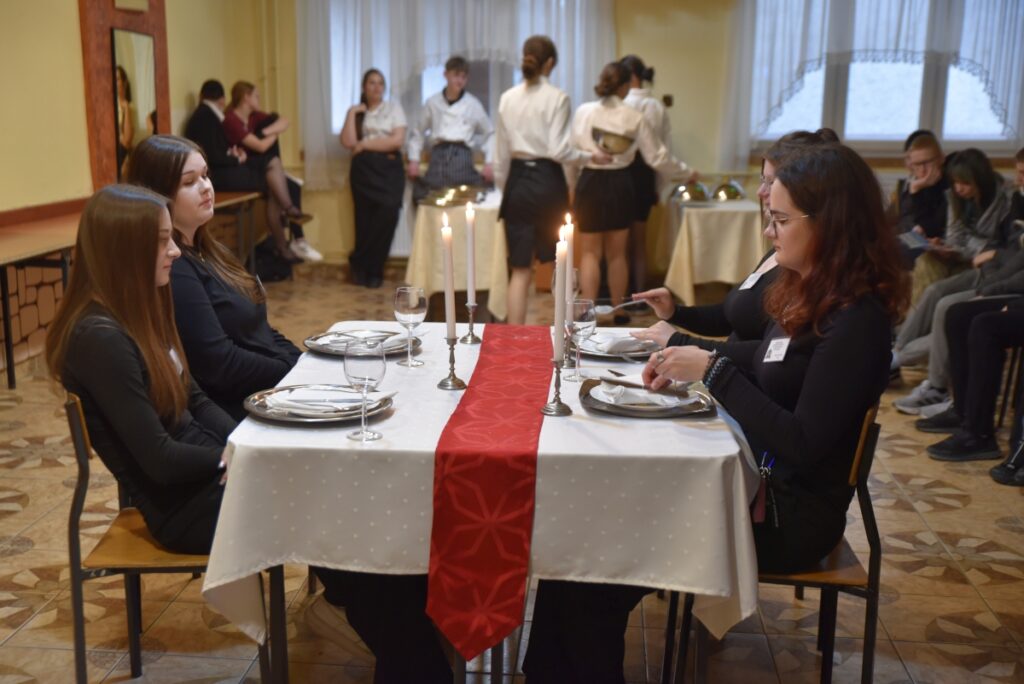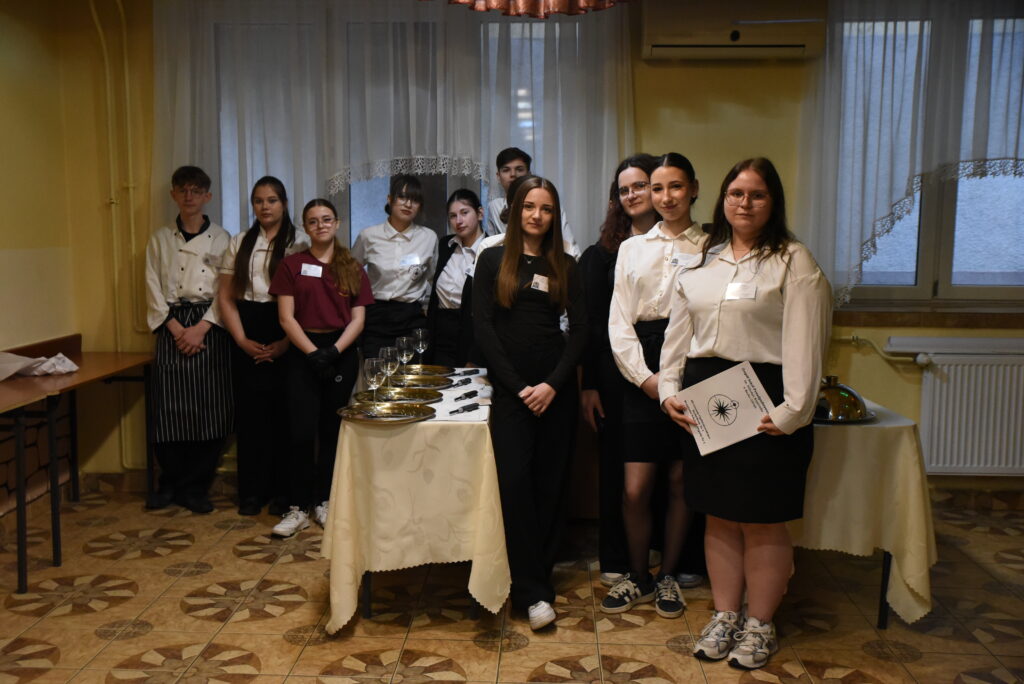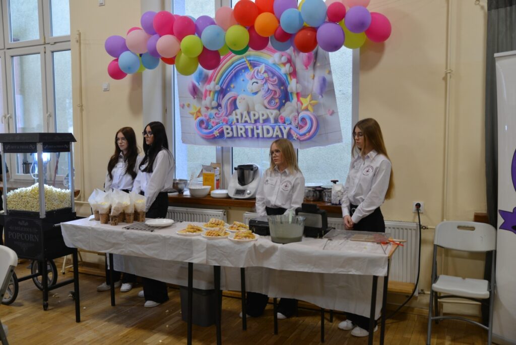 Nie zabrakło również atrakcji przygotowanych przez kierunek hotelarski – pokaz synchroniczny hotelarstwa wzbudził duże zainteresowanie i był doskonałą okazją do zaprezentowania umiejętności uczniów oraz specyfiki pracy w branży hotelarskiej.