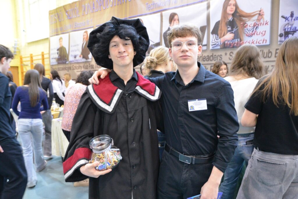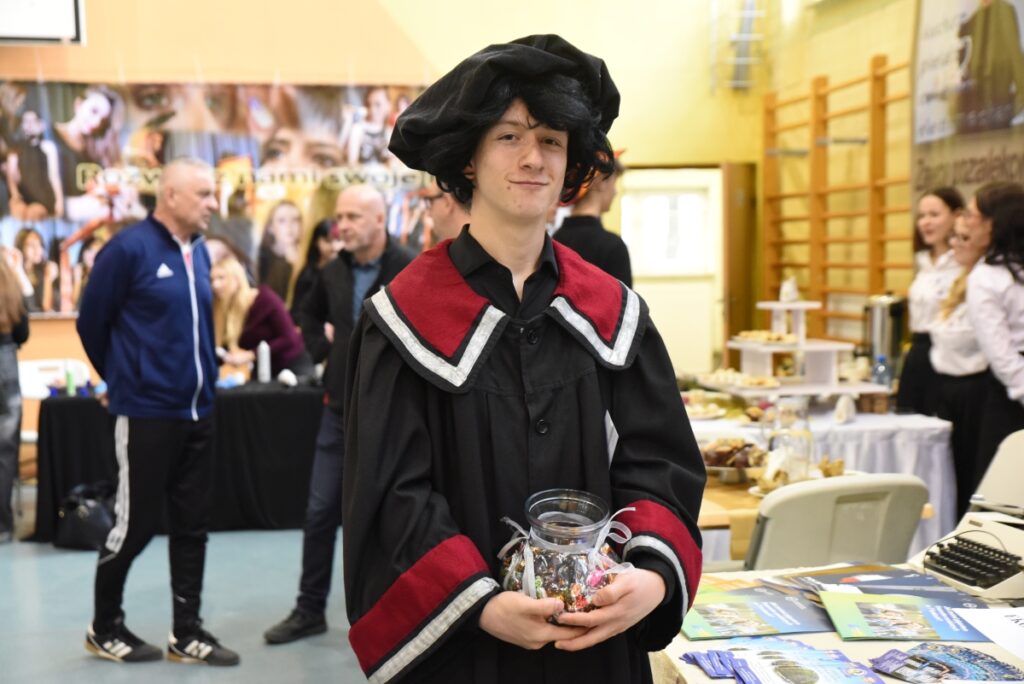 Wyjątkowym elementem wydarzenia była także postać Mikołaja Kopernika, w którą wcielił się uczeń klasy 1B Filip Cierniak, wzbudzając duże zainteresowanie i stanowiąc ciekawy akcent edukacyjny podczas Dni Otwartych.