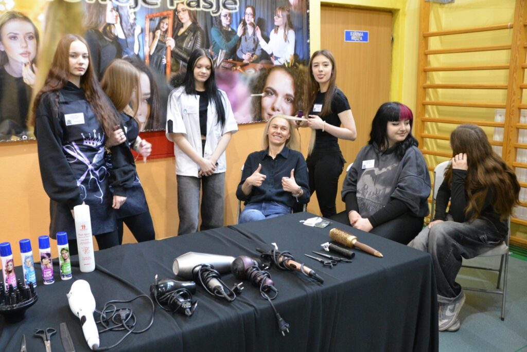Dużym powodzeniem cieszyło się stoisko fryzjerskie, które było wręcz oblegane przez uczestników Dni Otwartych. Można było zobaczyć pokaz tworzenia fryzur oraz koloryzacji włosów, a chętni mieli okazję spróbować metamorfozy i przekonać się, jak wygląda praca w tym zawodzie w praktyce.