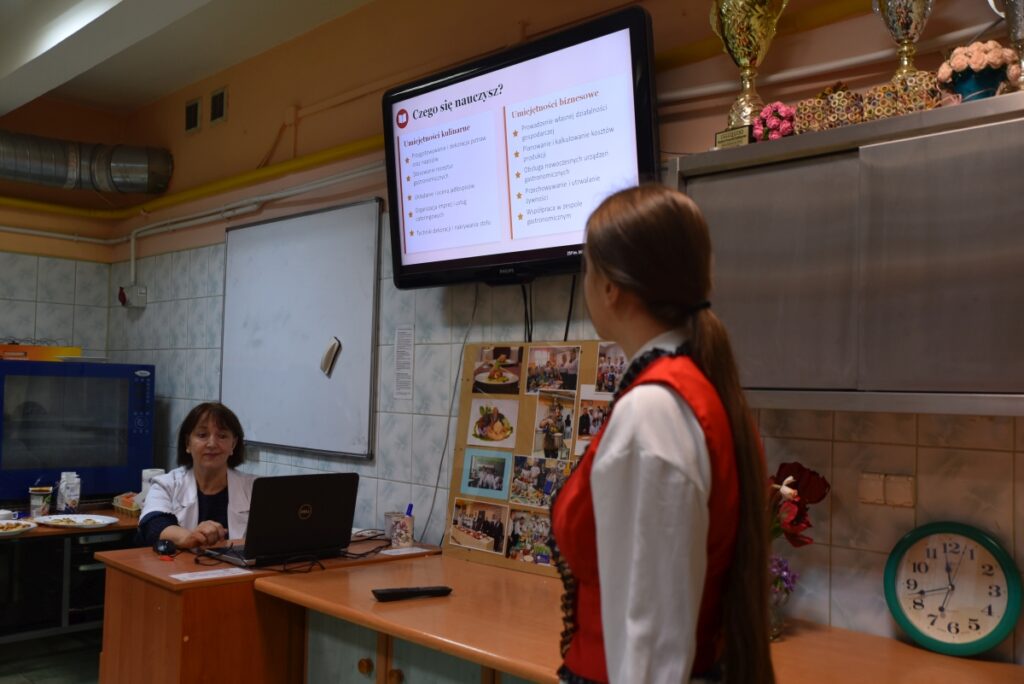 Dużym zainteresowaniem cieszyły się także warsztaty gastronomiczne, podczas których uczestnicy mogli zobaczyć, jak wygląda praca w szkolnej pracowni gastronomicznej oraz spróbować swoich sił w przygotowywaniu potraw.