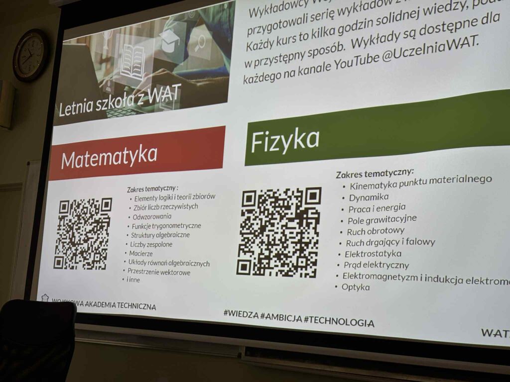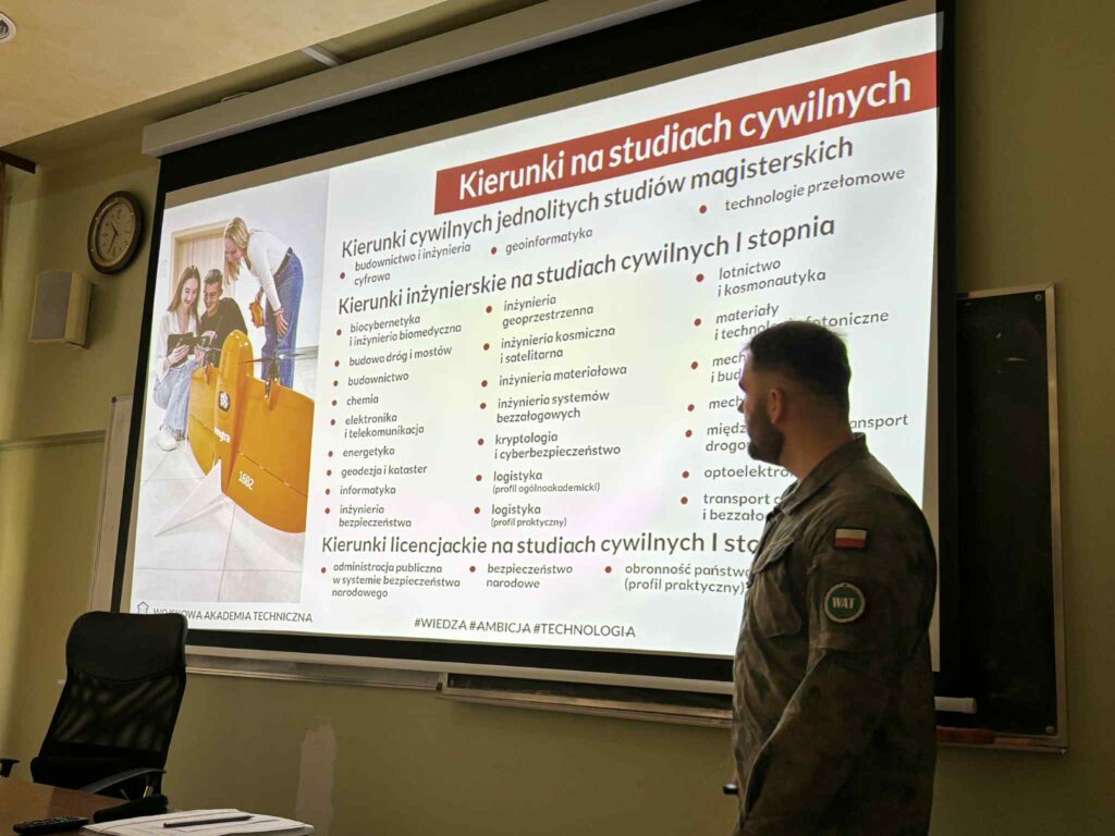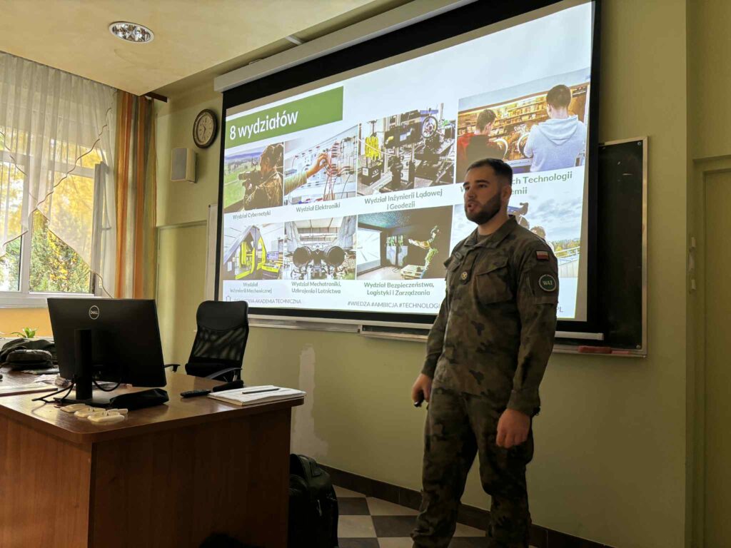 Goście przedstawili uczniom specyfikę studiów wojskowych, proces rekrutacji oraz ścieżki kariery w służbie zawodowej. Młodzież mogła poznać codzienność podchorążego, wymagania stawiane kandydatom oraz korzyści płynące z nauki w uczelni wojskowej.
