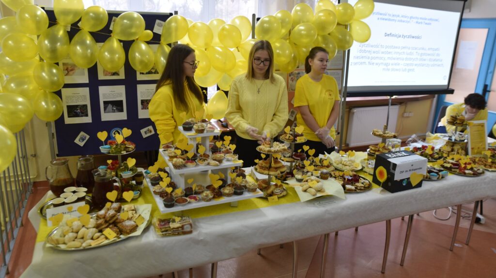 Dnia 17 listopada w naszej szkole obchodziliśmy Dzień Życzliwości – święto dobroci, serdeczności i wzajemnego wsparcia. Z tej okazji Szkolne Koło Dobroczynności i TPD zorganizowało przy współpracy z klasą 3C oraz 4G wyjątkowy Słodki Kiermasz, który cieszył się ogromnym zainteresowaniem uczniów, nauczycieli i pracowników.
