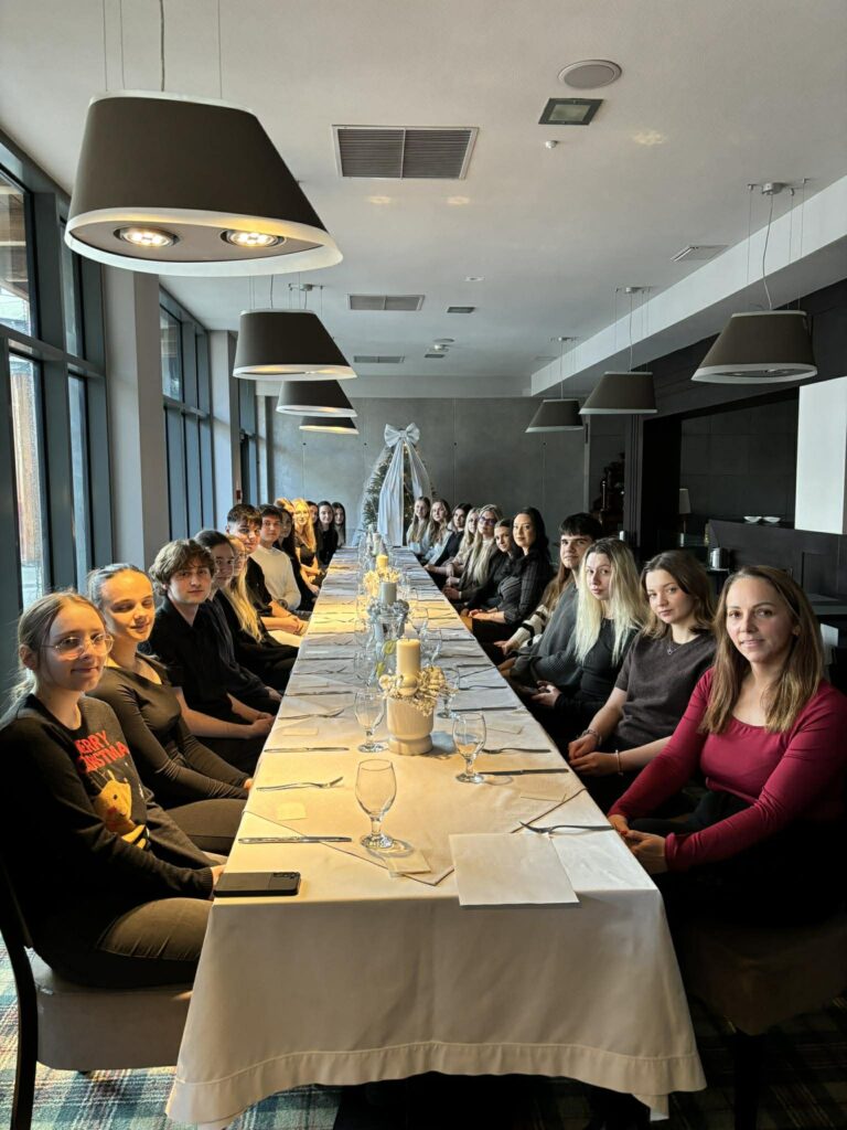W dniu 18 grudnia 2025 r. uczniowie klasy 5H wzięli udział w wyjątkowej hotelarskiej Wigilii, która miała niezwykle piękny, ciepły i symboliczny charakter. Było to bowiem nie tylko świąteczne spotkanie z nauczycielem praktycznej nauki zawodu Panią Iwoną Kąkol, ale także ostatni rok edukacji w Zespole Szkół Ponadpodstawowych im. Mikołaja Kopernika oraz podsumowanie pięciu lat zajęć praktycznych realizowanych w Hotelu Bristol.