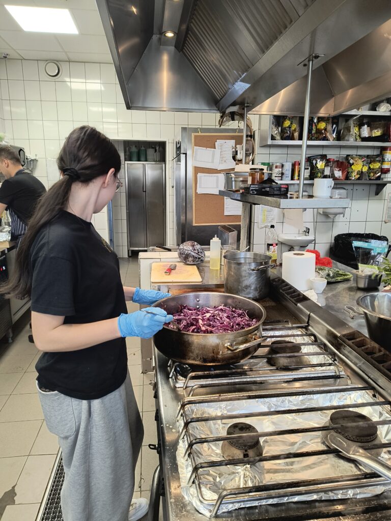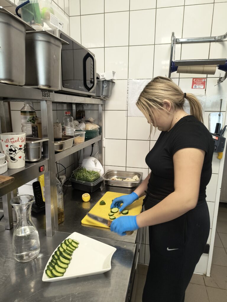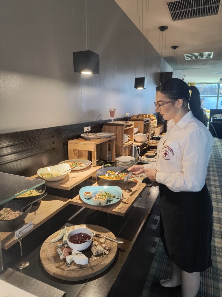 Tym razem przyszli hotelarze poznają tajniki organizacji i obsługi śniadań hotelowych, które stanowią jeden z najważniejszych elementów profesjonalnej obsługi gości. Cały proces rozpoczyna się na kuchni, gdzie uczniowie pod czujnym okiem doświadczonych kucharzy uczą się zasad przygotowywania i ekspozycji potraw śniadaniowych — od komponowania bufetu, przez dekorację dań, aż po utrzymanie odpowiednich warunków higienicznych i estetycznych.