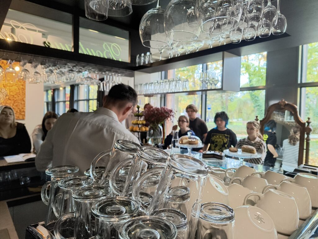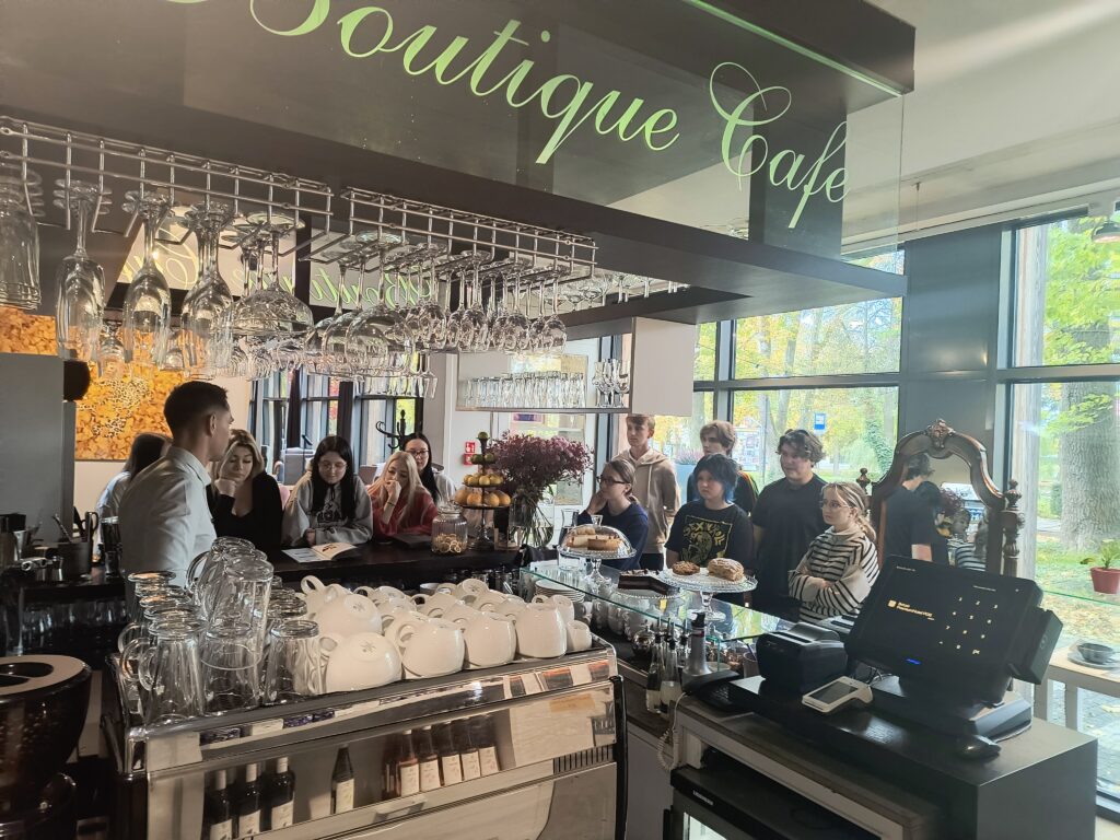 W tym tygodniu młodzież pod okiem doświadczonego baristy i instruktora obsługi konsumenta doskonaliła umiejętności parzenia kawy, poznając tajniki przygotowania espresso, cappuccino i latte art. Zajęcia odbyły się w profesjonalnym zapleczu restauracyjnym hotelu Bristol Art&Medical Spa, co pozwoliło uczniom na naukę w rzeczywistych warunkach pracy.