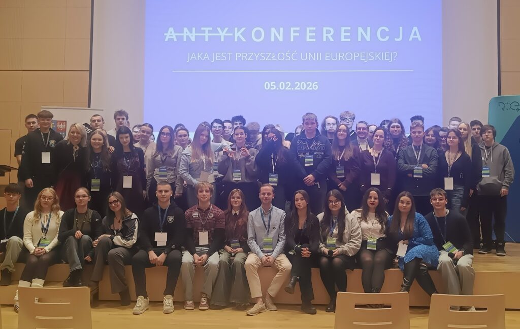 5 lutego 2026 r. uczniowie klas 3e oraz członkowie Samorządu Uczniowskiego i Szkolnego Klubu Europejskiego wzięli udział w wyjątkowym wydarzeniu – „Antykonferencji o przyszłości Europy”, która odbyła się w Filharmonii Świętokrzyskiej im. Oskara Kolberga w Kielcach. Spotkanie zostało zorganizowane przez Stowarzyszenie Rozprawy o Europie we współpracy z Młodzieżowym Sejmikiem Województwa Świętokrzyskiego w ramach projektu „Unia Europejska od A do Z – nowe pokolenie”.