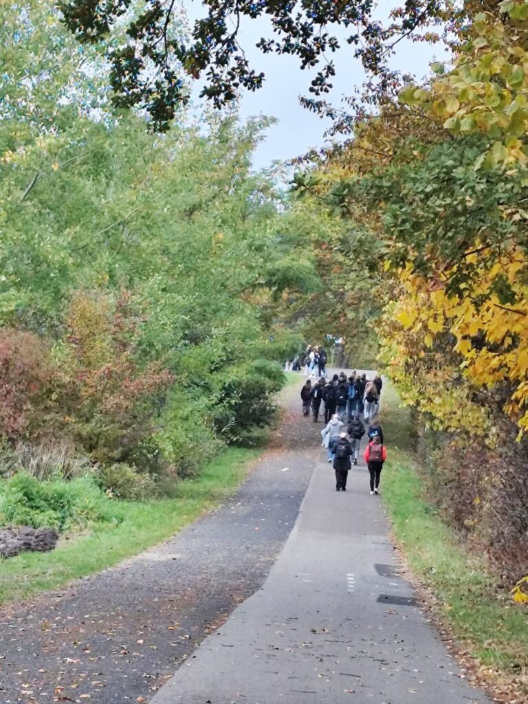 Dopisała również pogoda – jesienne słońce i ciepły wiatr sprzyjały pieszej wędrówce. Po dotarciu na miejsce uczestnicy mieli chwilę odpoczynku, wspólne zdjęcia i czas na rozmowy.