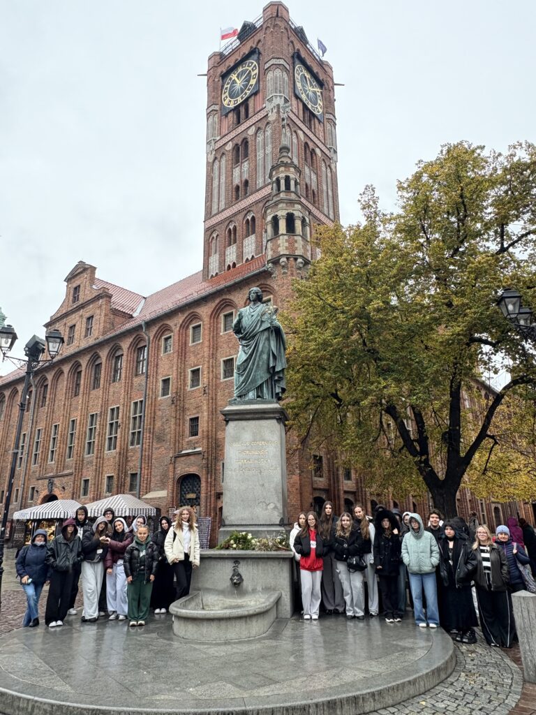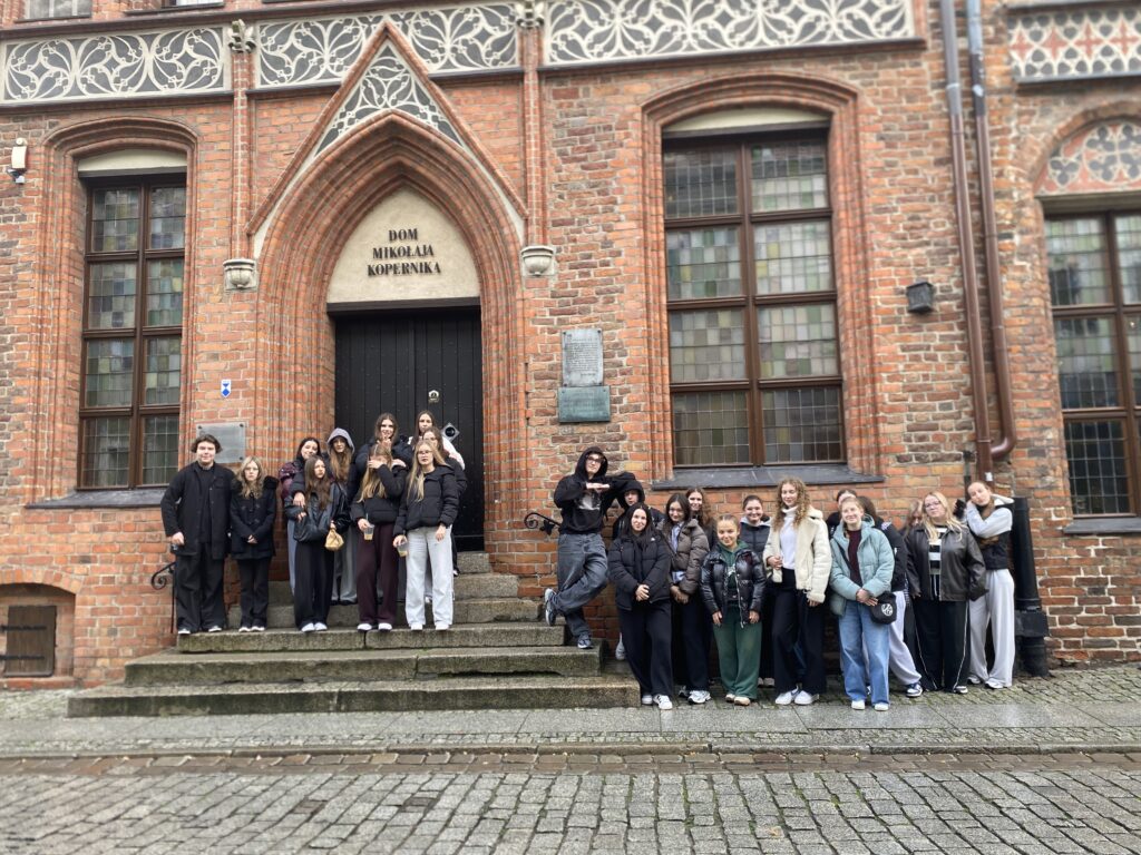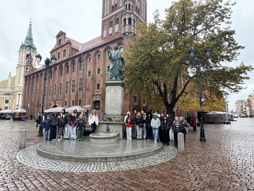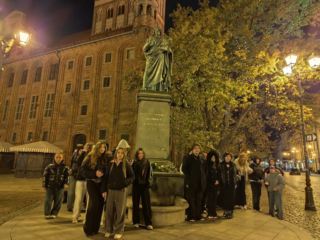 Zatrzymaliśmy się przy pomniku Mikołaja Kopernika, który od wieków przypomina, że „Wstrzymał Słońce, ruszył Ziemię”. Następnie odwiedziliśmy Dom Mikołaja Kopernika, w którym dziś mieści się muzeum poświęcone jego życiu i odkryciom naukowym. Wśród eksponatów zobaczyliśmy dawne instrumenty astronomiczne, globusy i rękopisy, które przybliżyły nam świat średniowiecznej nauki. Zwiedziliśmy katedrę Św. Jana, gdzie Kopernik został ochrzczony, Muzeum Historii Torunia w Domu Eskenów.