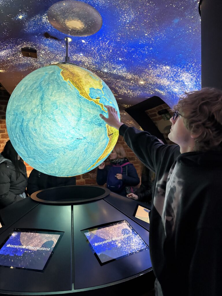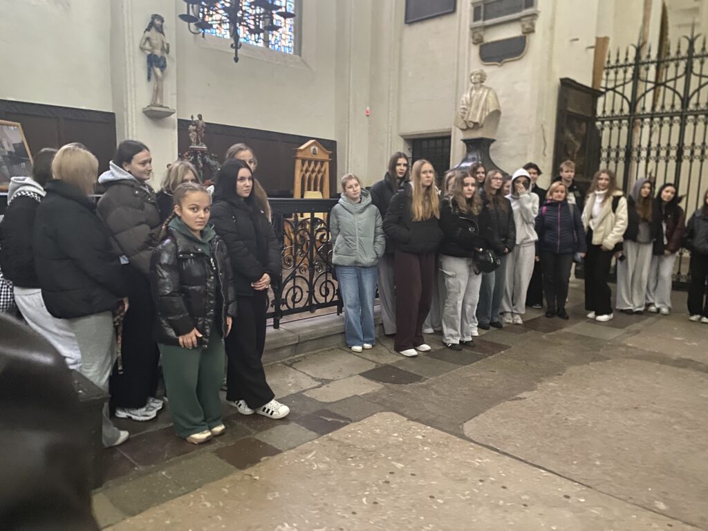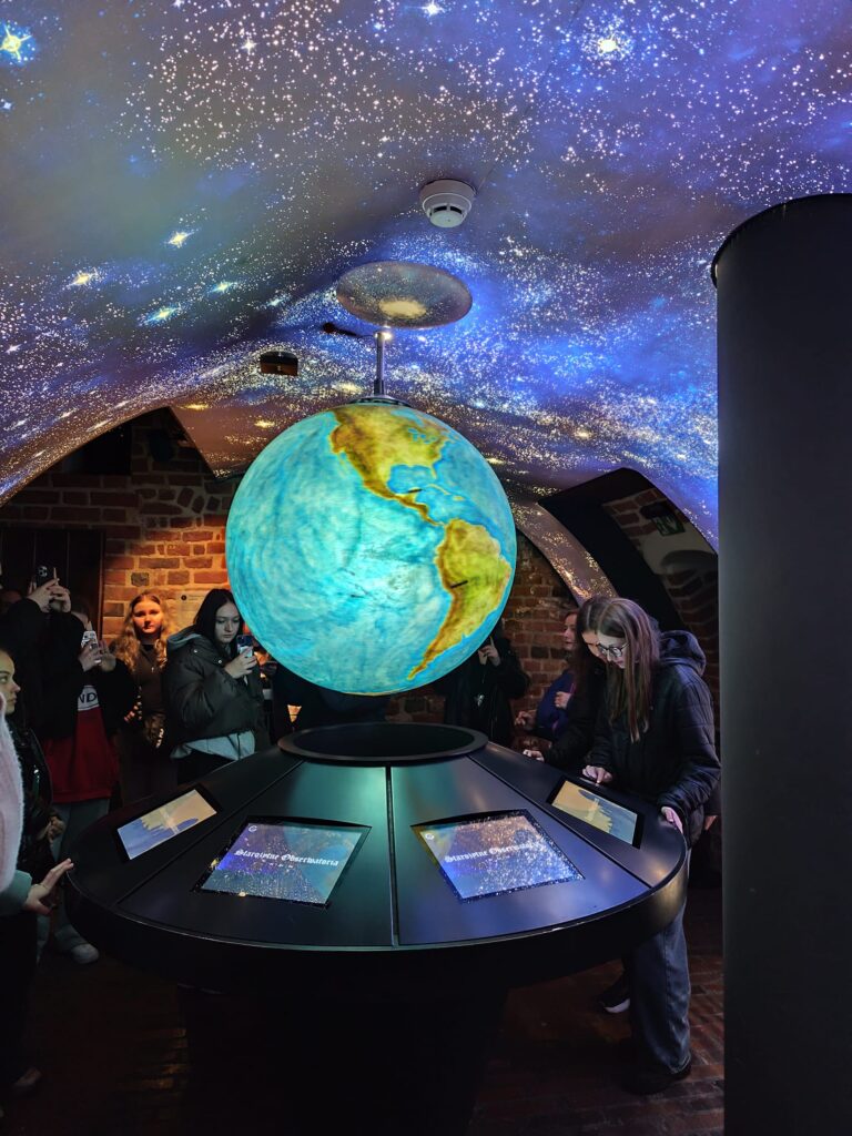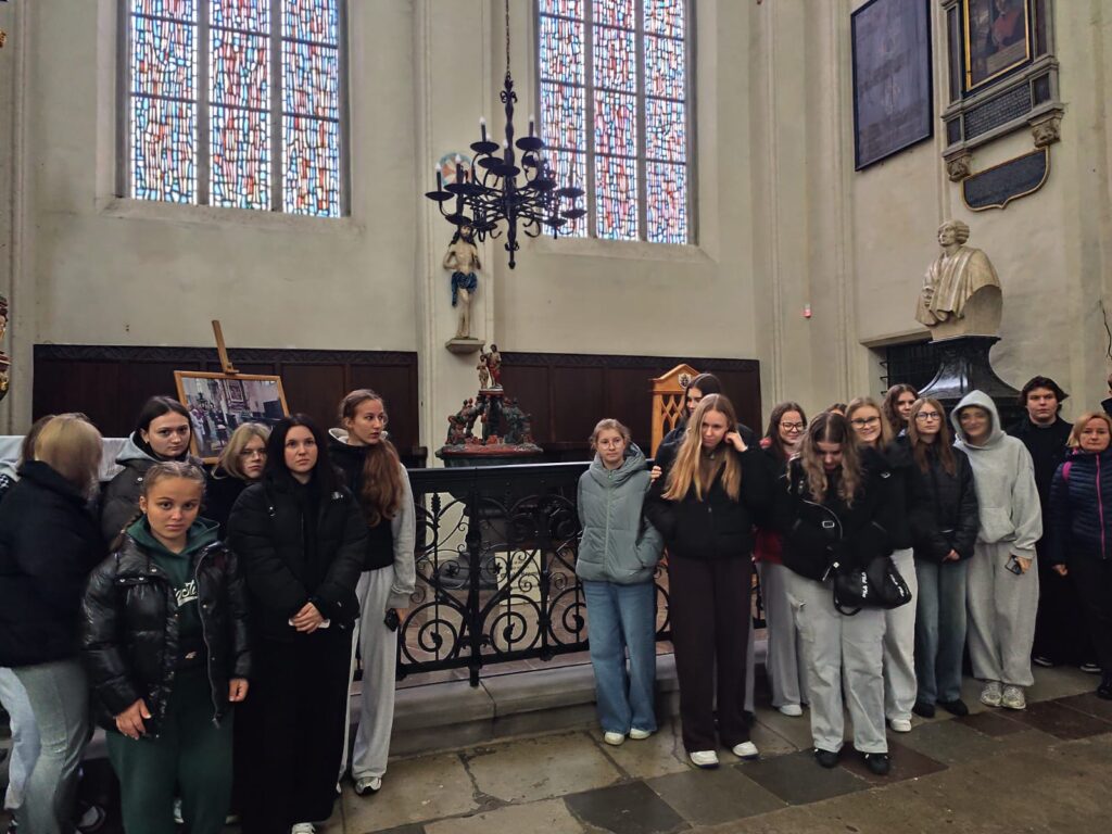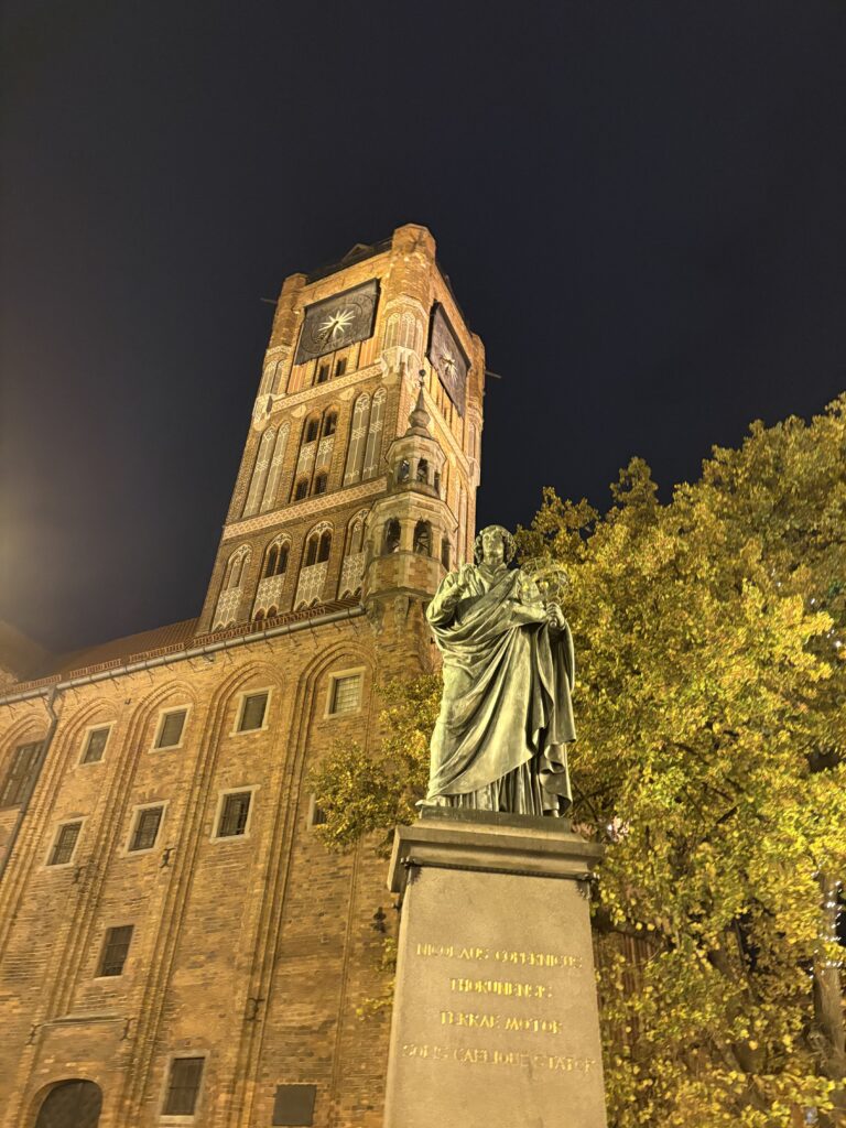 Zatrzymaliśmy się przy pomniku Mikołaja Kopernika, który od wieków przypomina, że „Wstrzymał Słońce, ruszył Ziemię”. Następnie odwiedziliśmy Dom Mikołaja Kopernika, w którym dziś mieści się muzeum poświęcone jego życiu i odkryciom naukowym. Wśród eksponatów zobaczyliśmy dawne instrumenty astronomiczne, globusy i rękopisy, które przybliżyły nam świat średniowiecznej nauki. Zwiedziliśmy katedrę Św. Jana, gdzie Kopernik został ochrzczony, Muzeum Historii Torunia w Domu Eskenów.