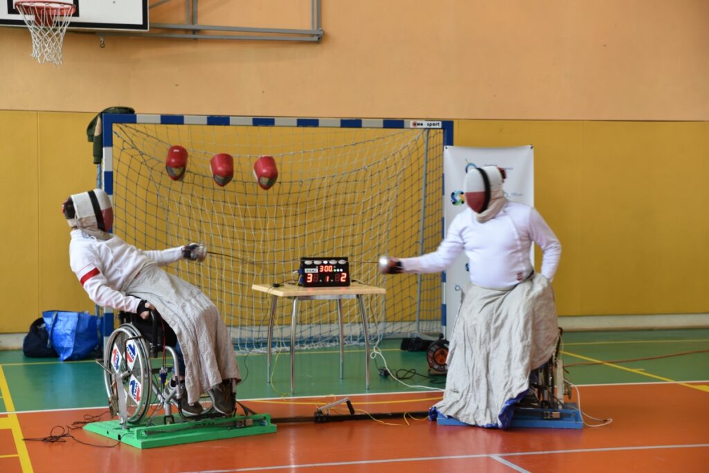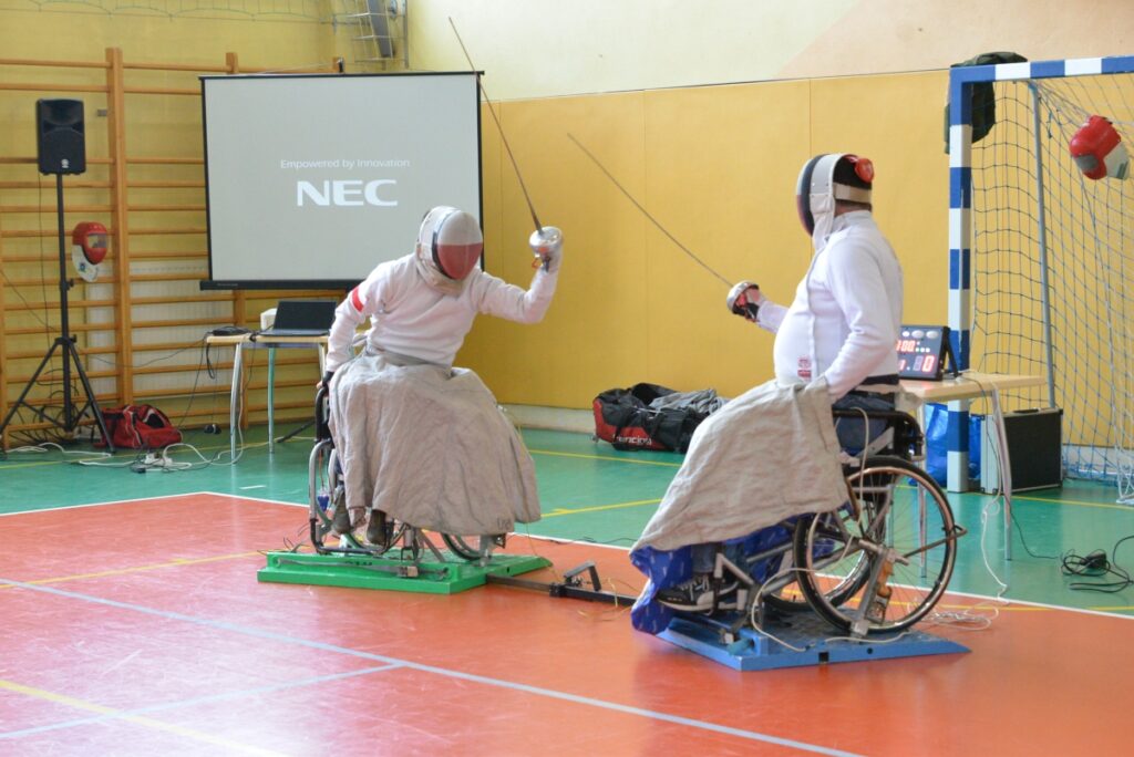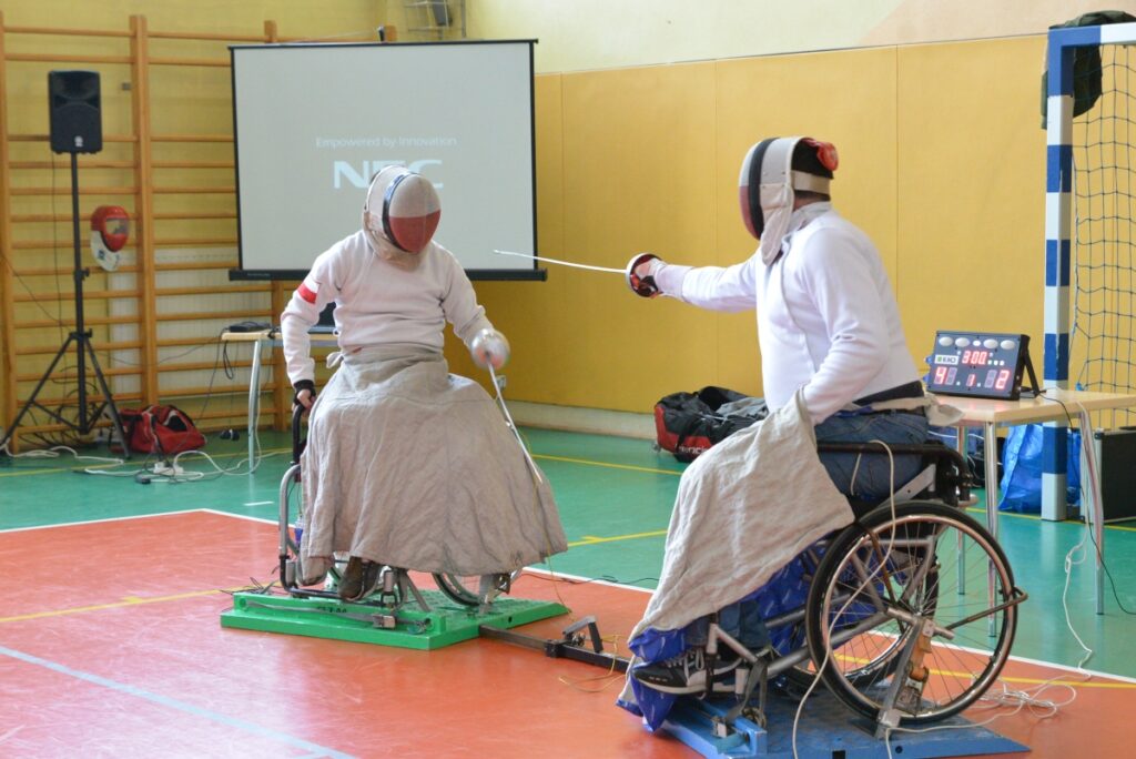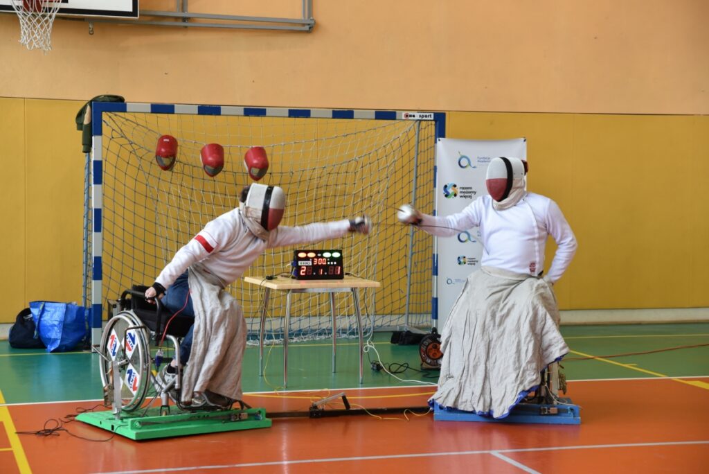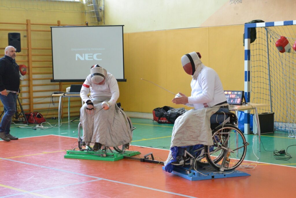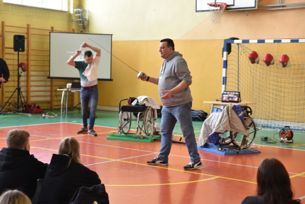 Spotkanie wzbogacił pokaz szermierki na wózkach, podczas którego uczniowie mieli możliwość bezpośredniego kontaktu z dyscypliną sportu osób z niepełnosprawnościami.