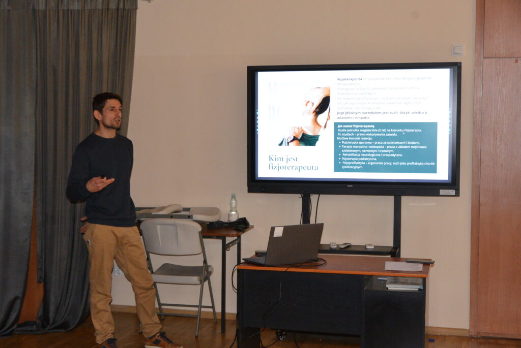 W dniu 13 listopada 2024 r. uczniowie klas maturalnych IV B oraz IV C mieli wyjątkową okazję wziąć udział w spotkaniu z Panem Cyprianem Trzaską, absolwentem naszej szkoły, a obecnie cenionym trenerem personalnym. Spotkanie odbyło się w ramach doradztwa zawodowego, mającego na celu wsparcie młodzieży w planowaniu ścieżki kariery i poznawaniu możliwości rozwoju zawodowego.