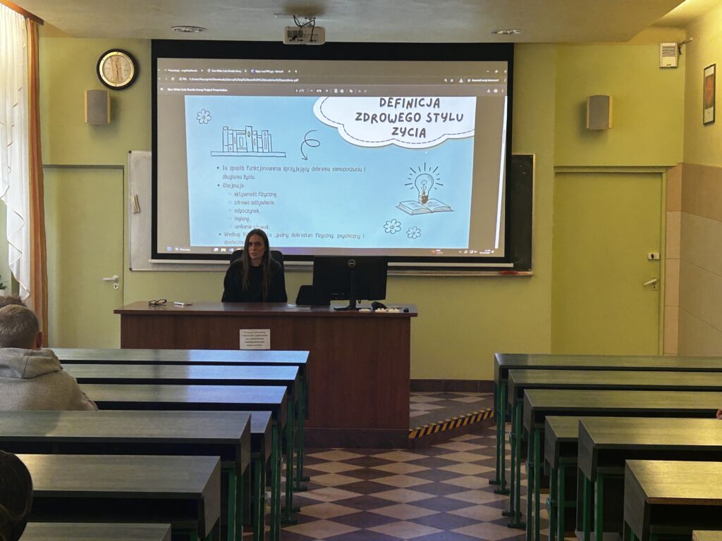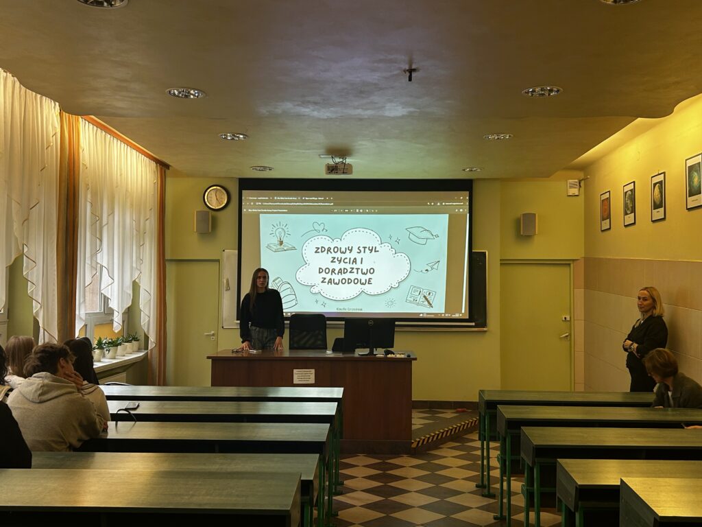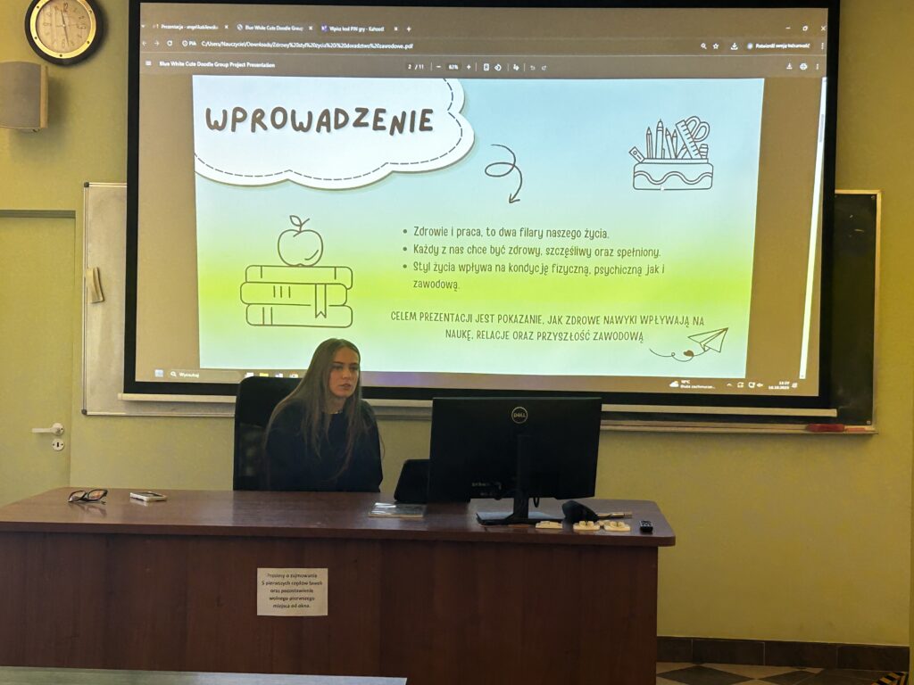 W ramach doradztwa zawodowego 16 października 2025 r. uczniowie klas 2B, 3B, 3C i 4D wzięli udział w inspirującym spotkaniu z naszą absolwentką, Klaudią Szczęśniak, obecnie studentką II roku pedagogiki.