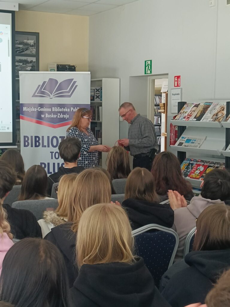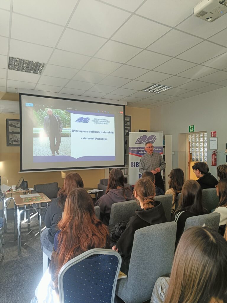 10 marca 2026 r. uczniowie klasy III C oraz IV h odwiedzili Bibliotekę Publiczną w Busku-Zdroju, gdzie wzięli udział w wyjątkowych zajęciach poświęconych literaturze i historii lokalnego środowiska. Głównym punktem spotkania była możliwość bliższego poznania twórczości poety – pana Artura Osińskiego.