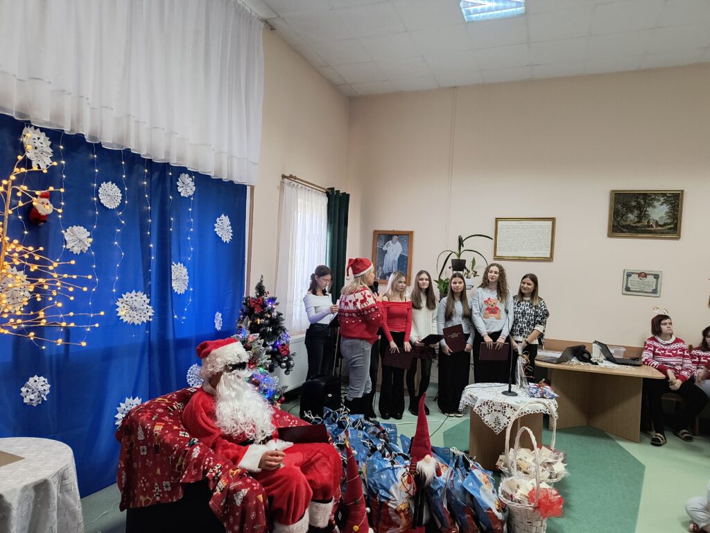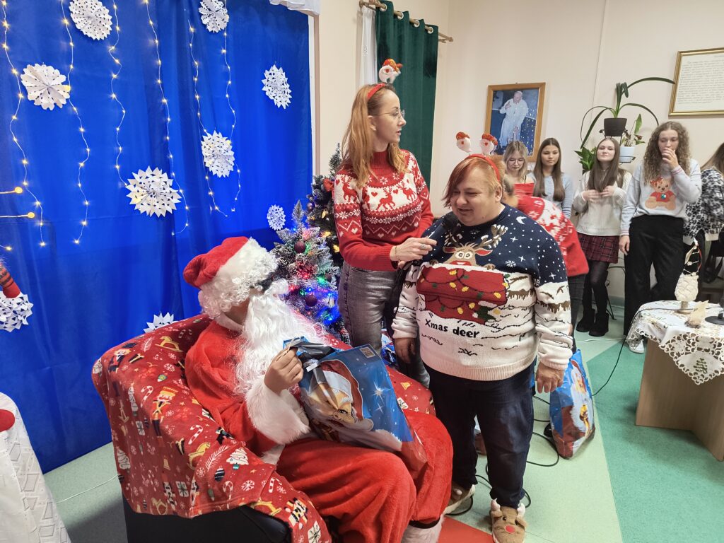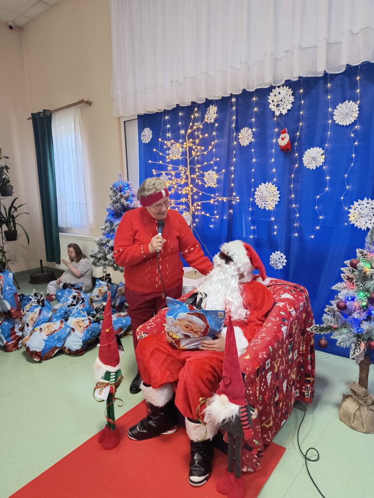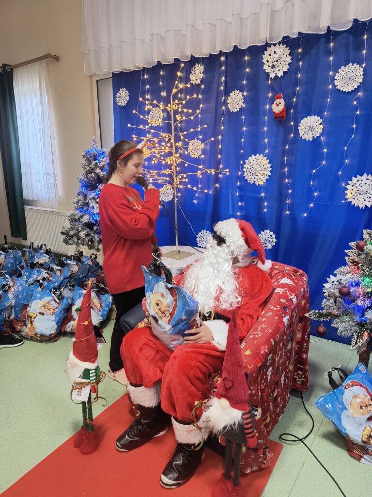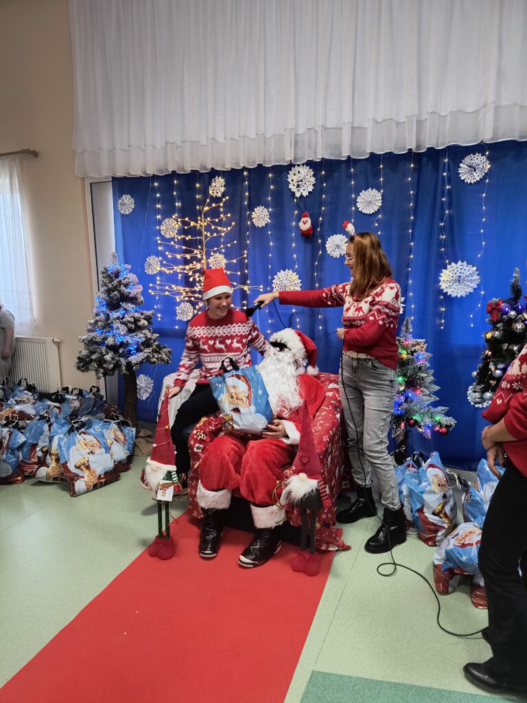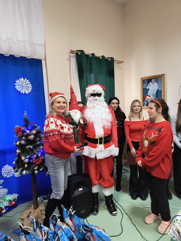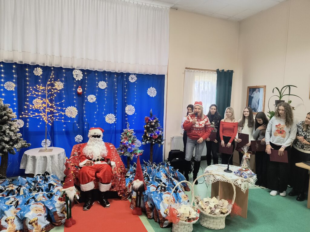 Podczas wizyty przygotowana została krótka część artystyczna, do której młodzież włożyła wiele serca, a wspólne kolędowanie wprowadziło wszystkich w magiczny świąteczny nastrój. Nie zabrakło również Mikołaja – w tę rolę wcielił się Marcel Trela, który wręczając drobne prezenty, wywoływał uśmiechy na twarzach podopiecznych.