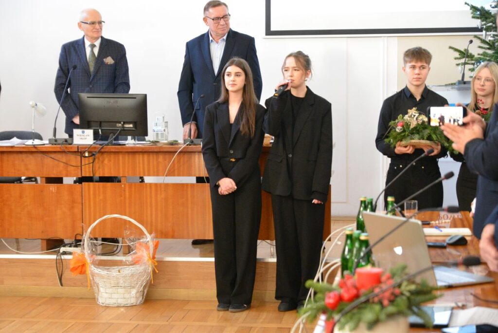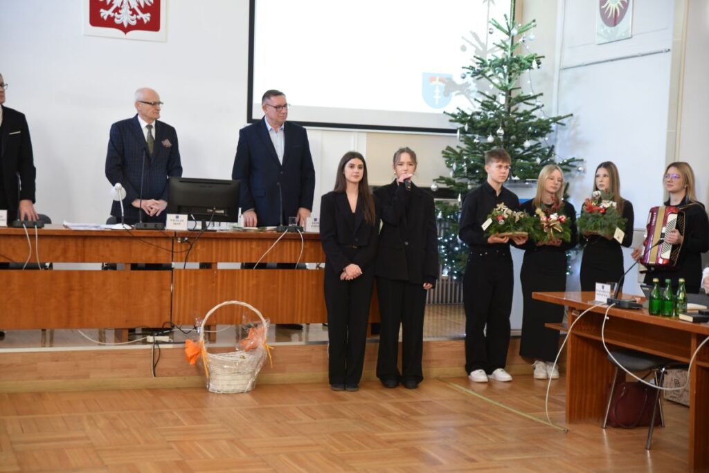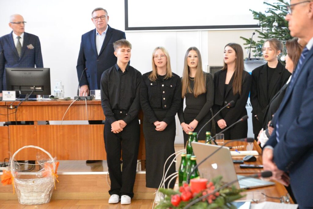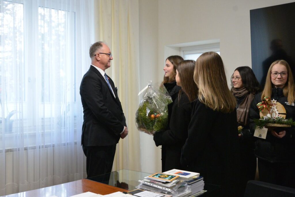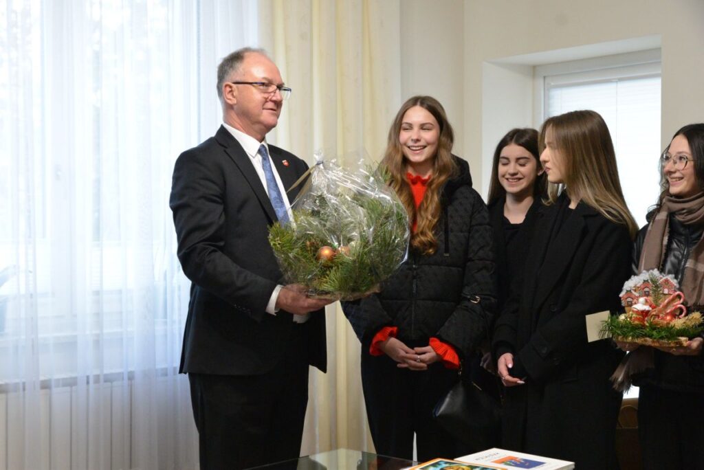 Burmistrz podziękował uczniom Zespołu Szkół Ponadpodstawowych za wizytę oraz złożone życzenia, wyrażając uznanie za ich zaangażowanie i kultywowanie pięknych tradycji. Przekazał całej społeczności szkolnej serdeczne życzenia zdrowych, spokojnych Świąt Bożego Narodzenia, pełnych radości, życzliwości i rodzinnego ciepła, a także wszelkiej pomyślności oraz sukcesów w nadchodzącym Nowym Roku.