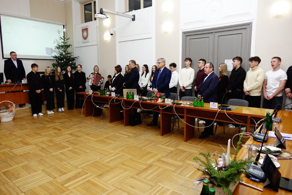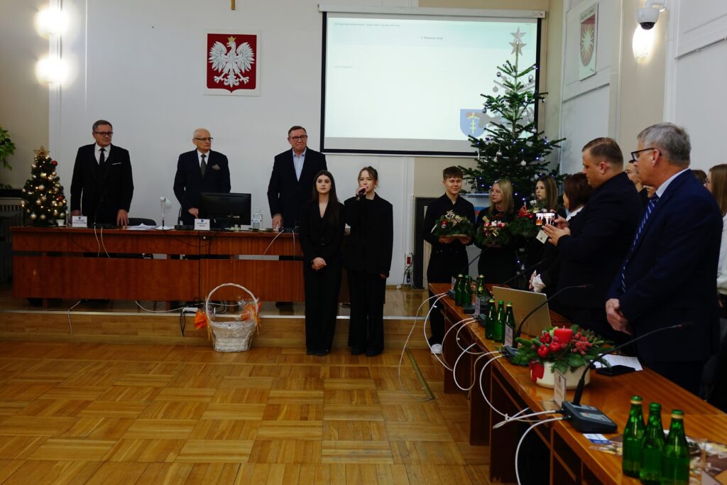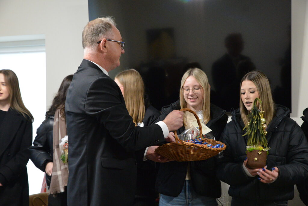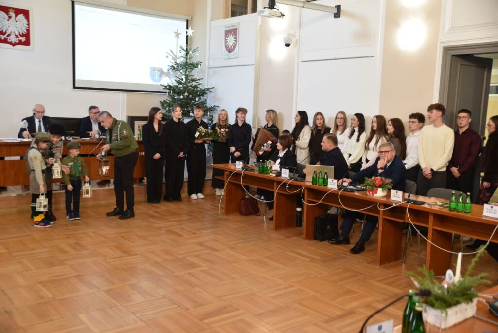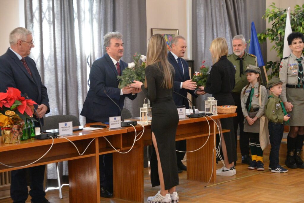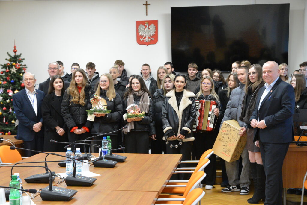 Burmistrz podziękował uczniom Zespołu Szkół Ponadpodstawowych za wizytę oraz złożone życzenia, wyrażając uznanie za ich zaangażowanie i kultywowanie pięknych tradycji. Przekazał całej społeczności szkolnej serdeczne życzenia zdrowych, spokojnych Świąt Bożego Narodzenia, pełnych radości, życzliwości i rodzinnego ciepła, a także wszelkiej pomyślności oraz sukcesów w nadchodzącym Nowym Roku.