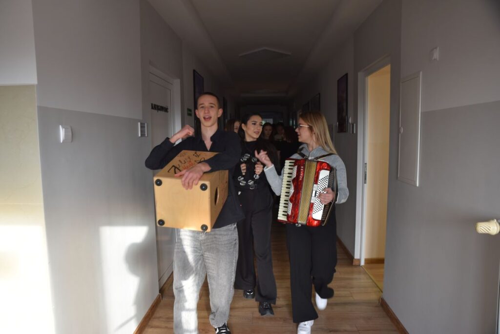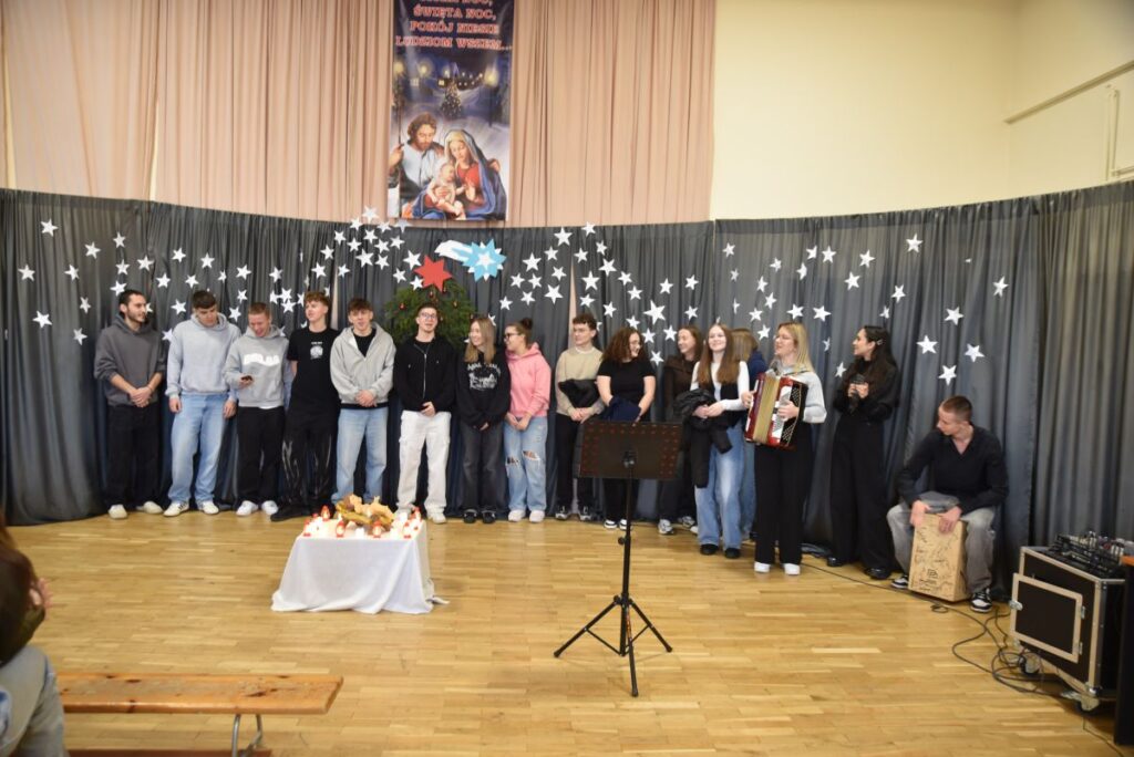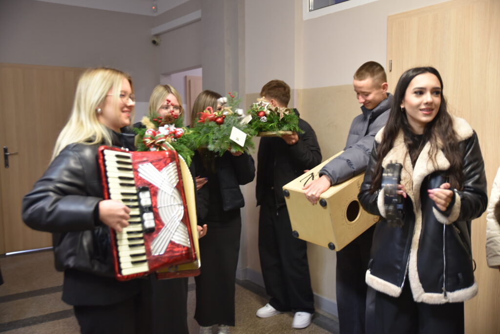18 i 19 grudnia 2025 r. uczniowie Zespołu Szkół Ponadpodstawowych wprowadzili całą społeczność szkolną w wyjątkowy, świąteczny nastrój poprzez wspólne kolędowanie oraz składanie bożonarodzeniowych życzeń.
