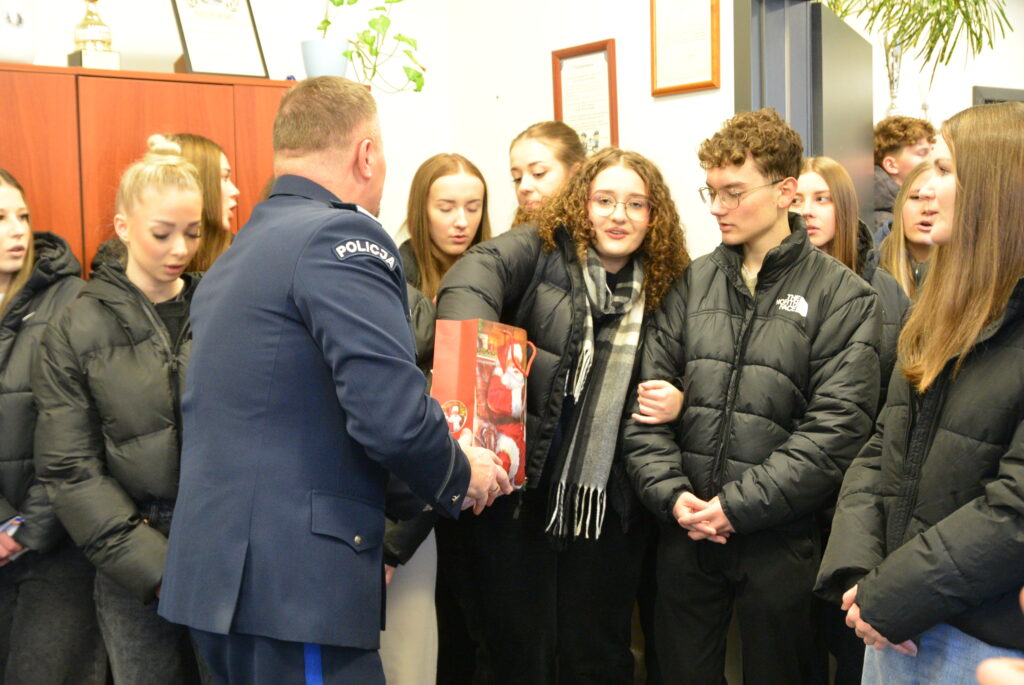 Uczniowie Zespołu Szkół Ponadpodstawowych skierowali życzenia do Komendanta Powiatowego Policji w Busku-Zdroju – insp. Andrzeja Skowrońskiego