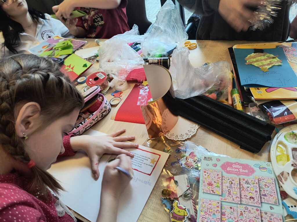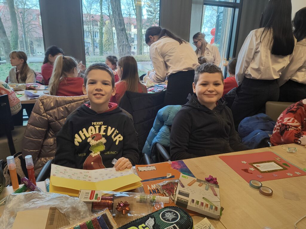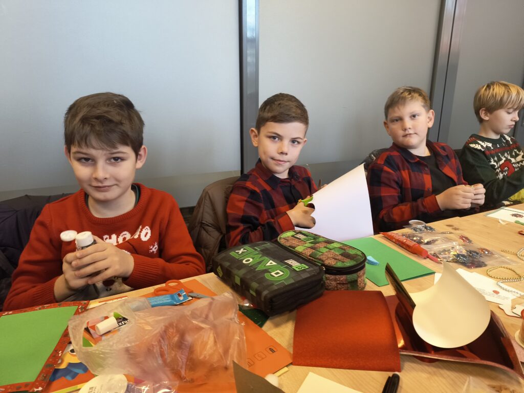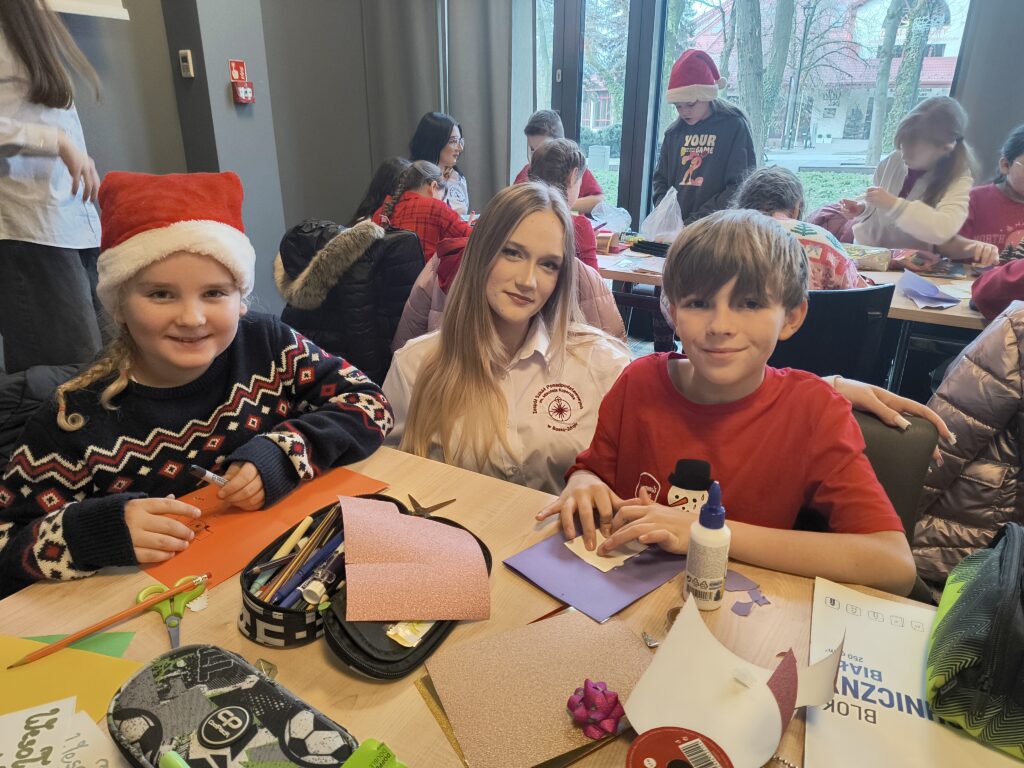 Podczas warsztatów młodsi uczniowie mieli okazję uczyć się od starszych kolegów – uczniów klasy 3H, którzy z zaangażowaniem i cierpliwością wprowadzali dzieci w świat kreatywnych działań. Spotkanie przebiegło w niezwykle serdecznej, świątecznej atmosferze, sprzyjającej integracji, współpracy oraz wzajemnemu uczeniu się.
