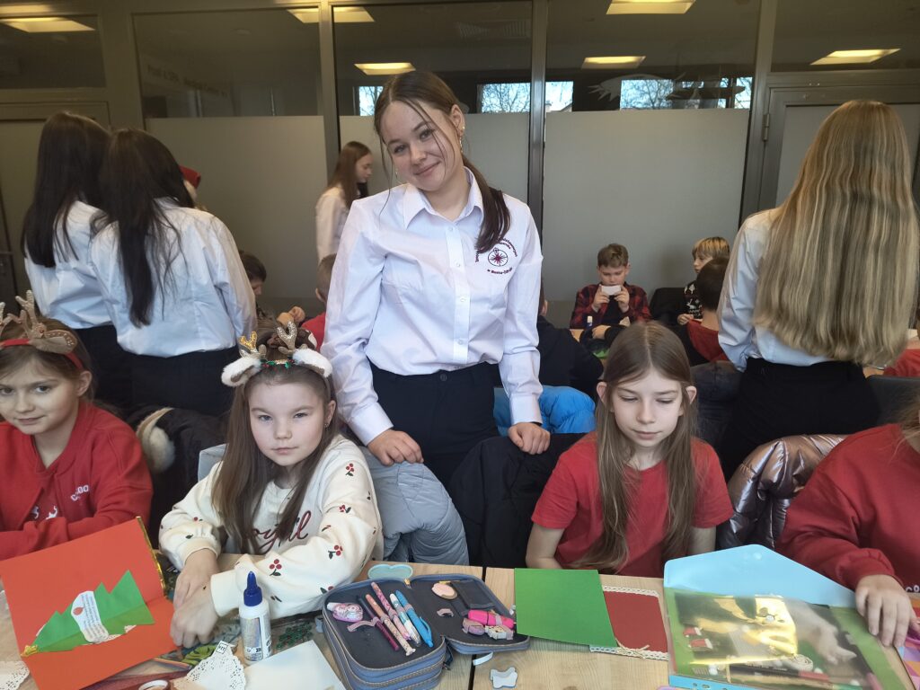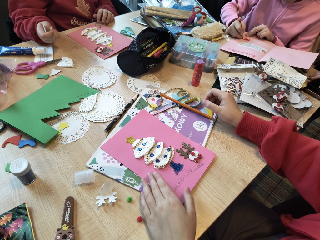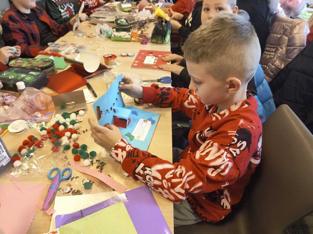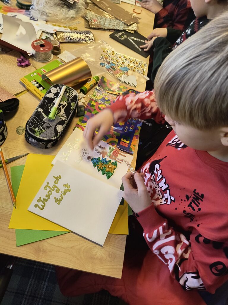 Podczas warsztatów młodsi uczniowie mieli okazję uczyć się od starszych kolegów – uczniów klasy 3H, którzy z zaangażowaniem i cierpliwością wprowadzali dzieci w świat kreatywnych działań. Spotkanie przebiegło w niezwykle serdecznej, świątecznej atmosferze, sprzyjającej integracji, współpracy oraz wzajemnemu uczeniu się.