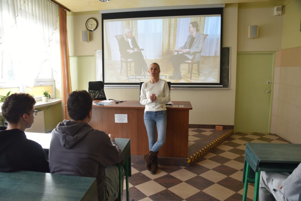 W dniu 03.03.2026 r. uczniowie naszej Szkoły wzięli udział w wyjątkowym wydarzeniu edukacyjnym – zdalnej lekcji z Cyklu Obywatelskich Lekcji Zdalnych prowadzonej przez Annę Marię Wesołowską. Tematem spotkania była rola prawa w codziennym życiu młodego człowieka.