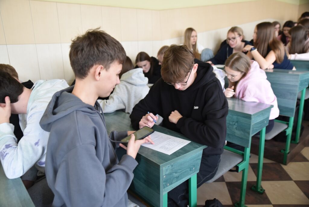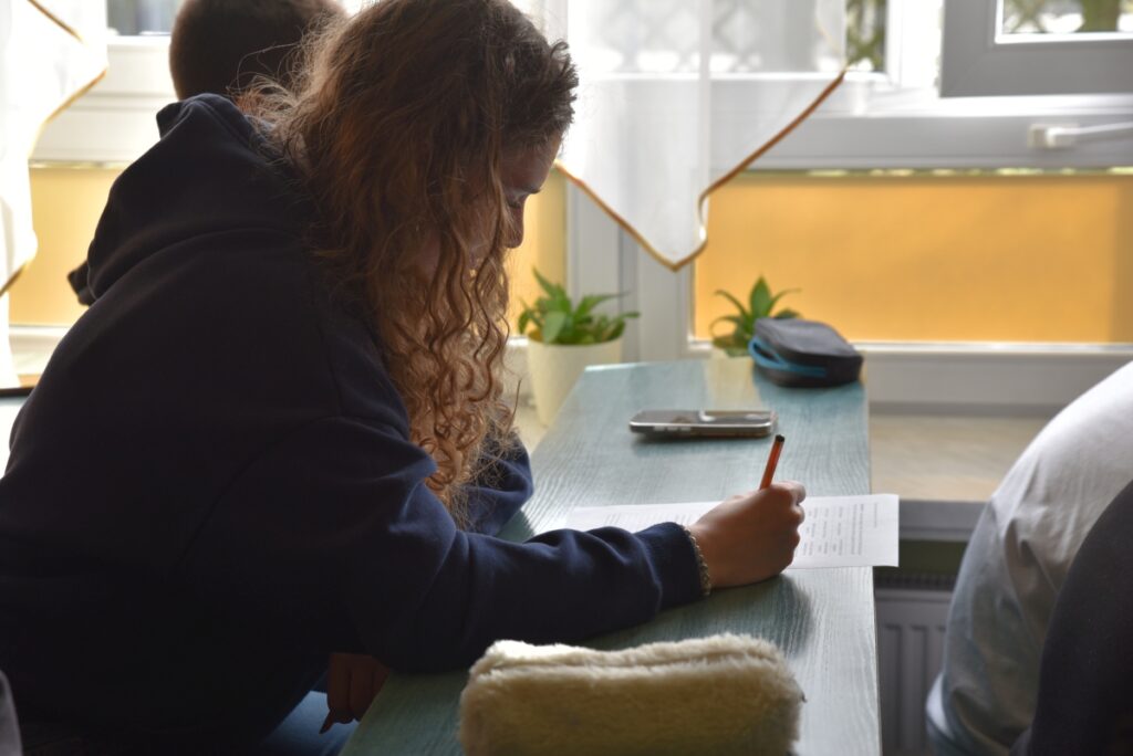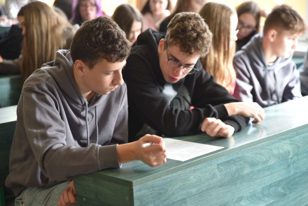 Po części zdalnej uczniowie wzięli udział w warsztatach, podczas których wspólnie uzupełniali i analizowali karty pracy oparte na przepisach prawa.