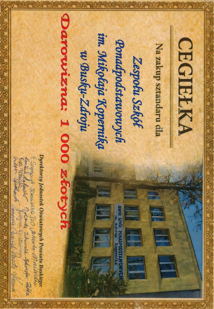 Dziękujemy za życzliwość, wsparcie i zaangażowanie w działalność naszej szkoły oraz pomoc w organizacji jubileuszu. Wasze wsparcie jest wyrazem troski o rozwój młodzieży i społeczności lokalnej.