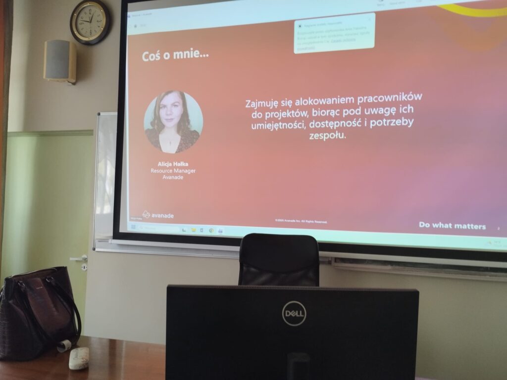 Spotkanie poprowadziła Alicja Hałka – Resource Manager w firmie Avanade, która na co dzień zajmuje się dopasowywaniem pracowników do projektów oraz współpracą z klientami.