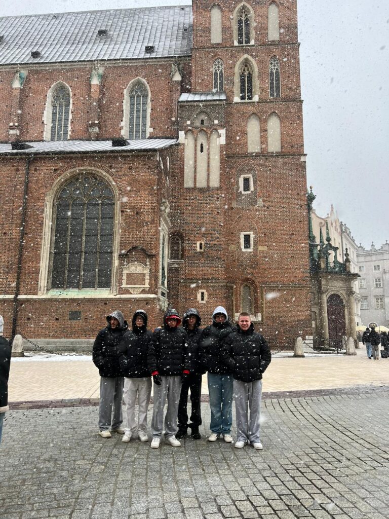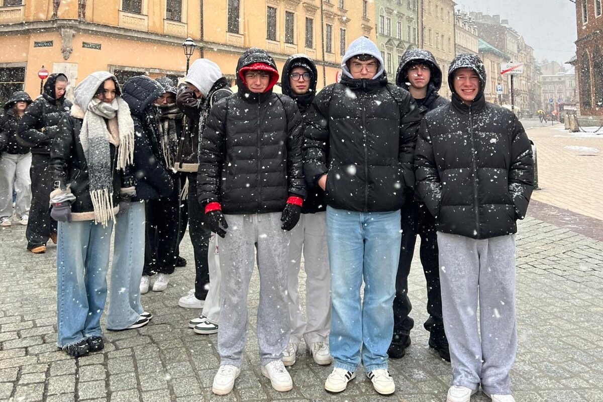 Drugiego dnia uczniowie udali się do Krakowa, gdzie czekała ich kolejna porcja atrakcji. Zwiedzili Pałac Krzysztoforów, jedno z najważniejszych miejsc związanych z historią miasta. Wystawy, eksponaty oraz opowieści przewodnika przybliżyły uczniom bogate dzieje dawnej stolicy Polski – od średniowiecza po czasy współczesne. Podczas spaceru po zaśnieżonym Krakowie uczestnicy poznali również ciekawostki dotyczące losów miasta, jego zabytków oraz kultury. Zwiedzanie stało się ciekawą lekcją historii w terenie.