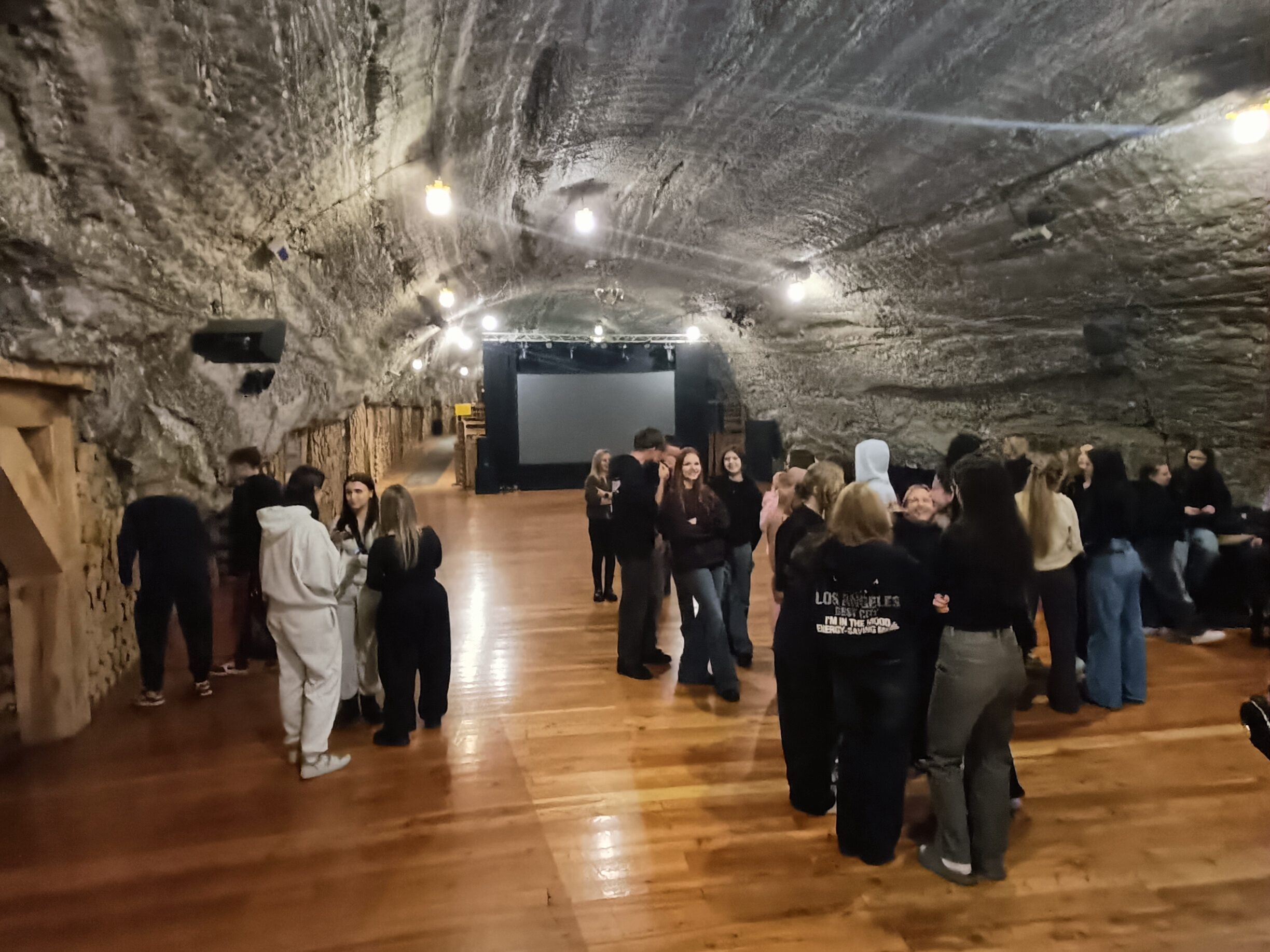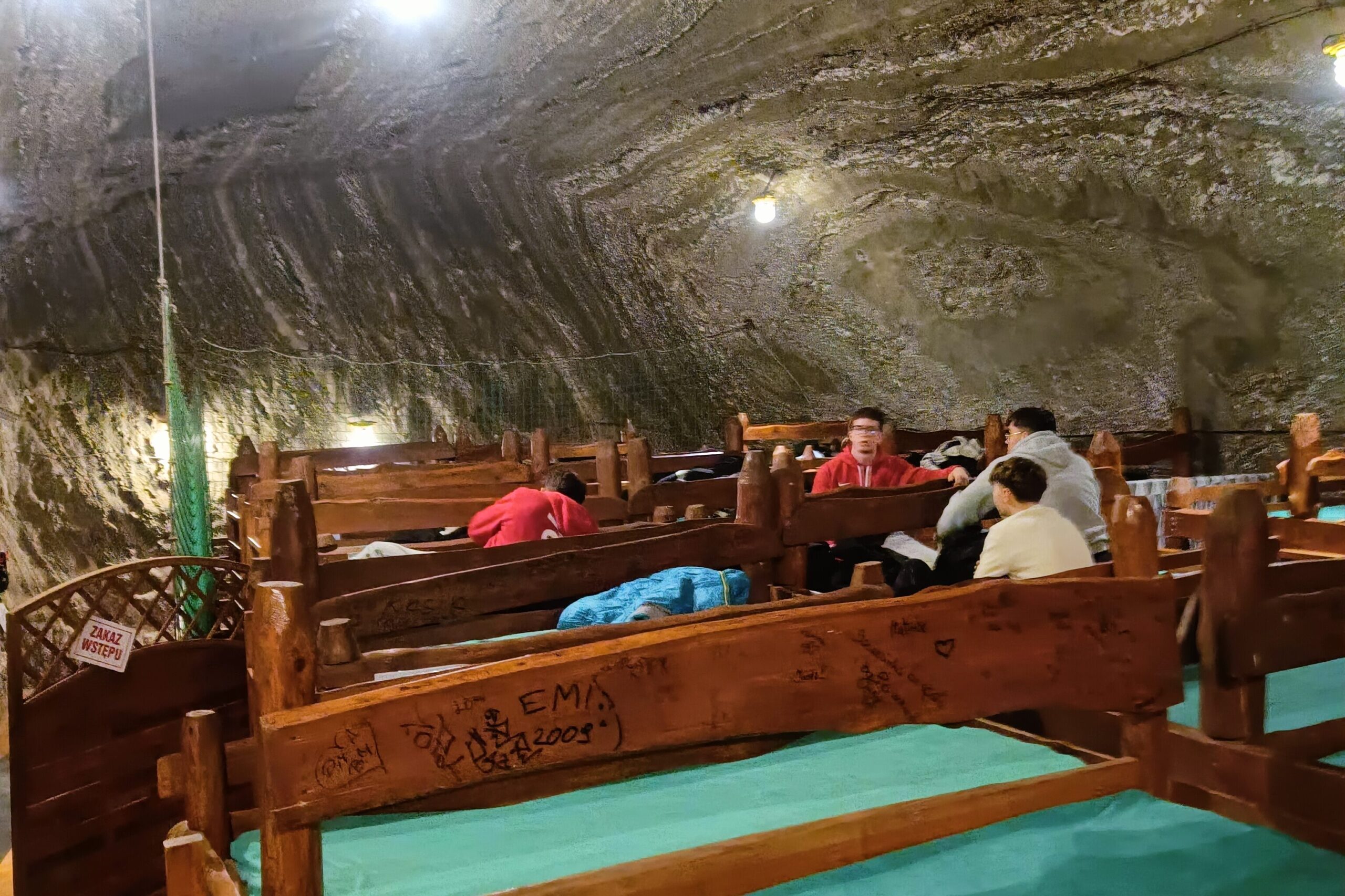 Uczniowie mieli okazję zobaczyć multimedialne prezentacje przedstawiające życie dawnych górników i rozwój górnictwa solnego. Jedną z największych atrakcji było pływanie łódką po podziemnym jeziorku – przeżycie, które na długo pozostanie w pamięci uczestników. Późnym wieczorem odbył się także wspólny mecz na boisku znajdującym się aż 250 metrów pod ziemią. Sportowa rywalizacja w tak nietypowych warunkach okazała się niezapomnianym doświadczeniem i dostarczyła wielu emocji. Następnie grupa zakwaterowała się w podziemnej sali, gdzie spędziła noc. Nocleg w kopalni nie był jedynie atrakcją – uczniowie mieli okazję skorzystać z prozdrowotnych właściwości mikroklimatu panującego w dolnych, solnych komorach, który sprzyja układowi oddechowemu i wspomaga ogólną regenerację.