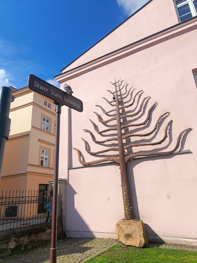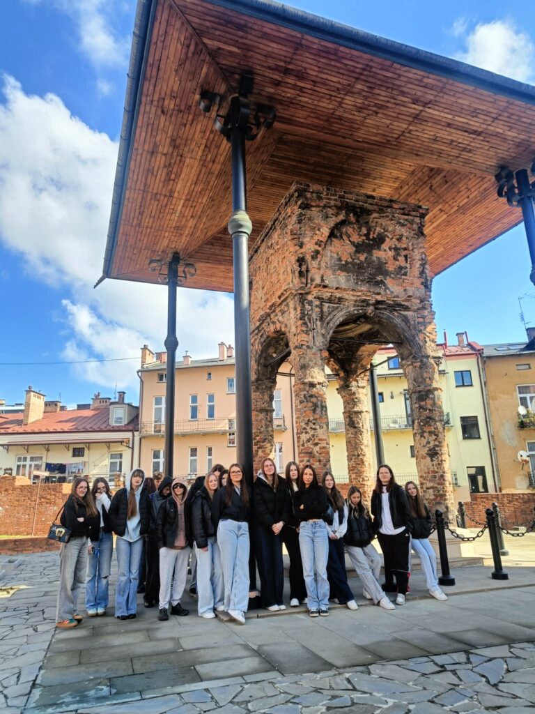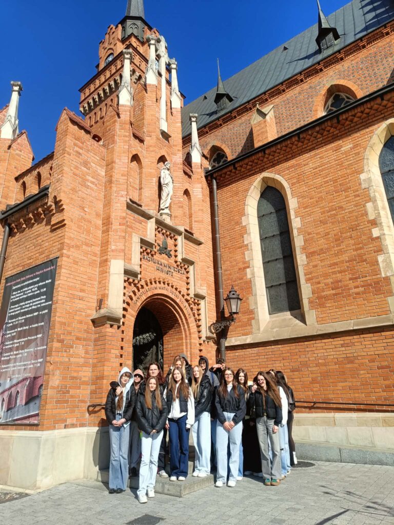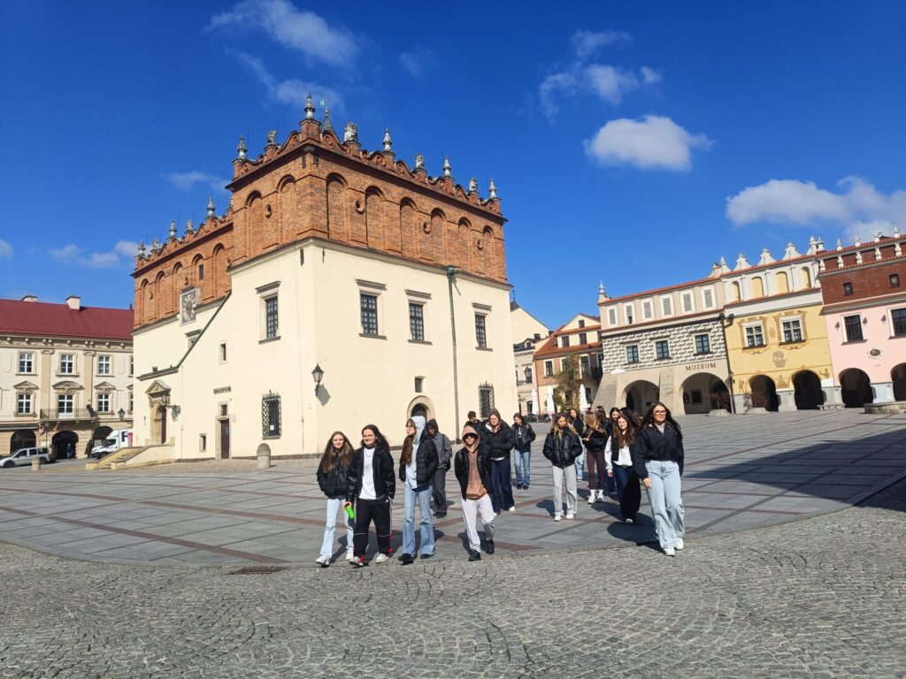 Zwiedzanie rozpoczęło się od spaceru z przewodnikiem po przepięknym tarnowskim rynku oraz przylegających uliczkach. Uczniowie mieli okazję zobaczyć Bazylikę Katedralną Narodzenia Najświętszej Maryi Panny, gdzie szczególną uwagę zwróciły zabytkowe nagrobki, w tym Barbary Tarnowskiej, z najpiękniejszą w Europie kobiecą rzeźbą nagrobną. Następnie grupa podziwiała ratusz oraz malownicze kamienice otaczające rynek. W programie znalazła się także wizyta przy jedynym zachowanym fragmencie najstarszej synagogi – Bimie oraz spacer po dawnej dzielnicy żydowskiej, co pozwoliło lepiej poznać historię i wielokulturowe dziedzictwo miasta.
